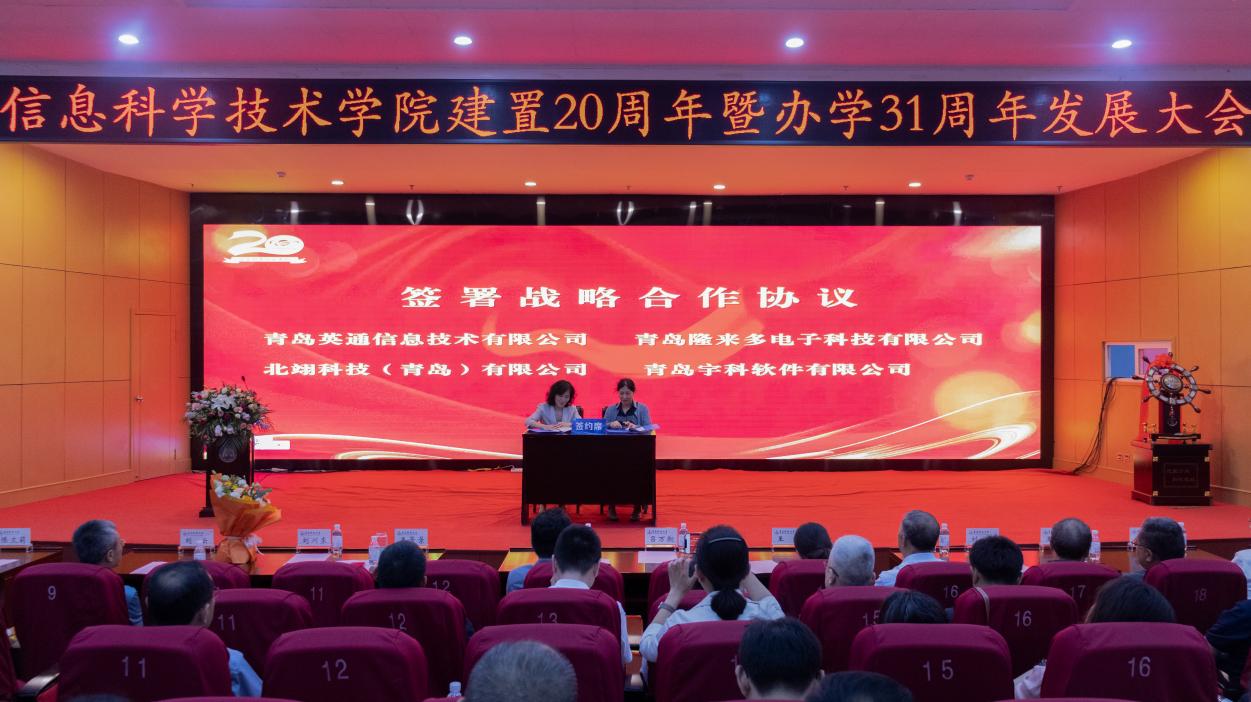 KY开元集团官网入口办学以来与各级党政机关部门、企事业单位、行业协会等建立了多种形式的合作与交流,并产生了多项合作成果。为了进一步提升合作层次,深化合作内涵,在大会现场,开元官网与青岛英通信息技术有限公司、青岛隆来多电子科技有限公司、北翊科技(青岛)有限公司、青岛宇科软件有限公司,分别签订共建行业学院的战略合作协议。