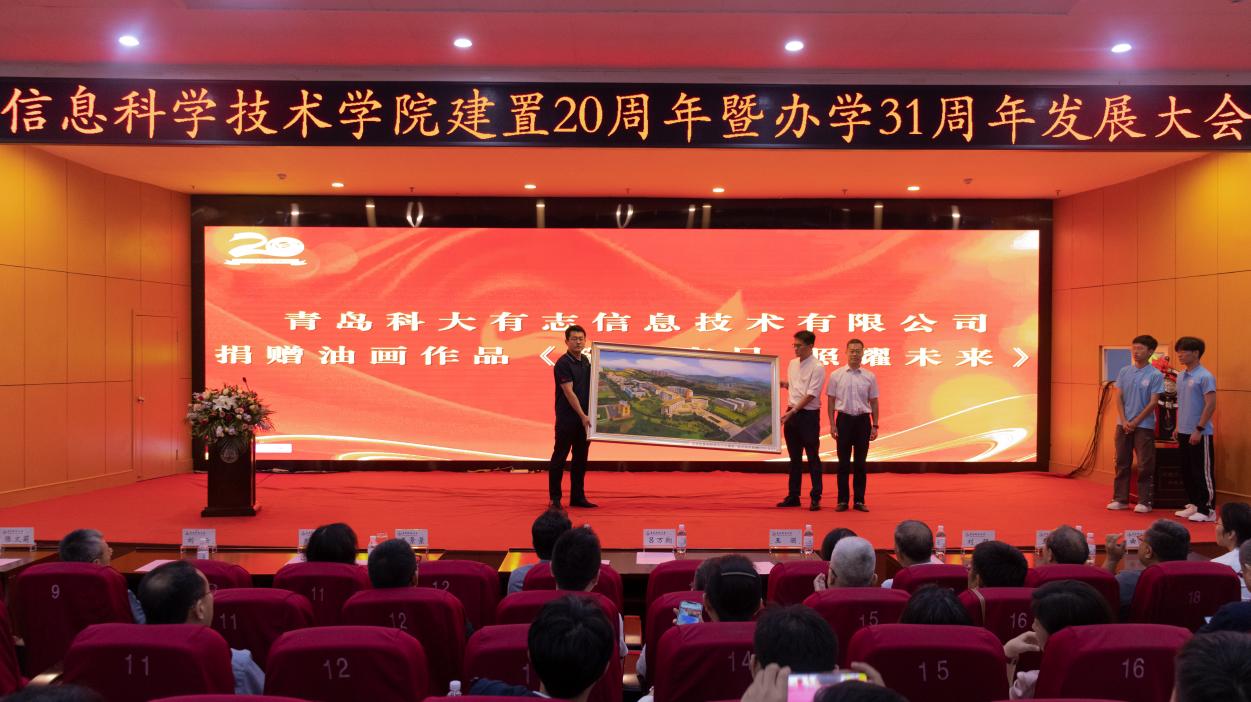青岛科大有志信息技术有限公司CEO刘健、董事长助理李英铭向学院捐赠《璀璨夺目 照耀未来》油画作品,希望KY开元集团官网入口不断推进学院各项工作的规范化、科学化发展,力求为国家的科技进步与经济社会发展做出更大贡献。