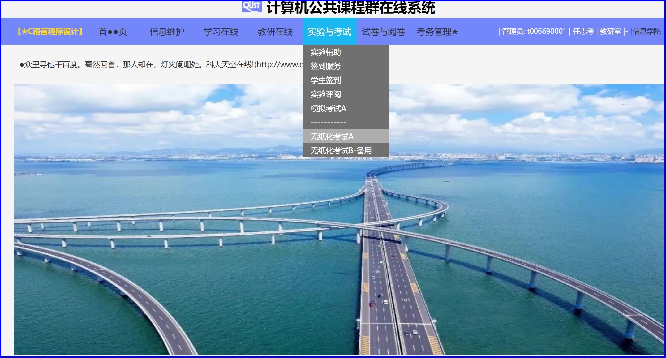 选择菜单【实验与考试】-选择【无纸化考试A】。