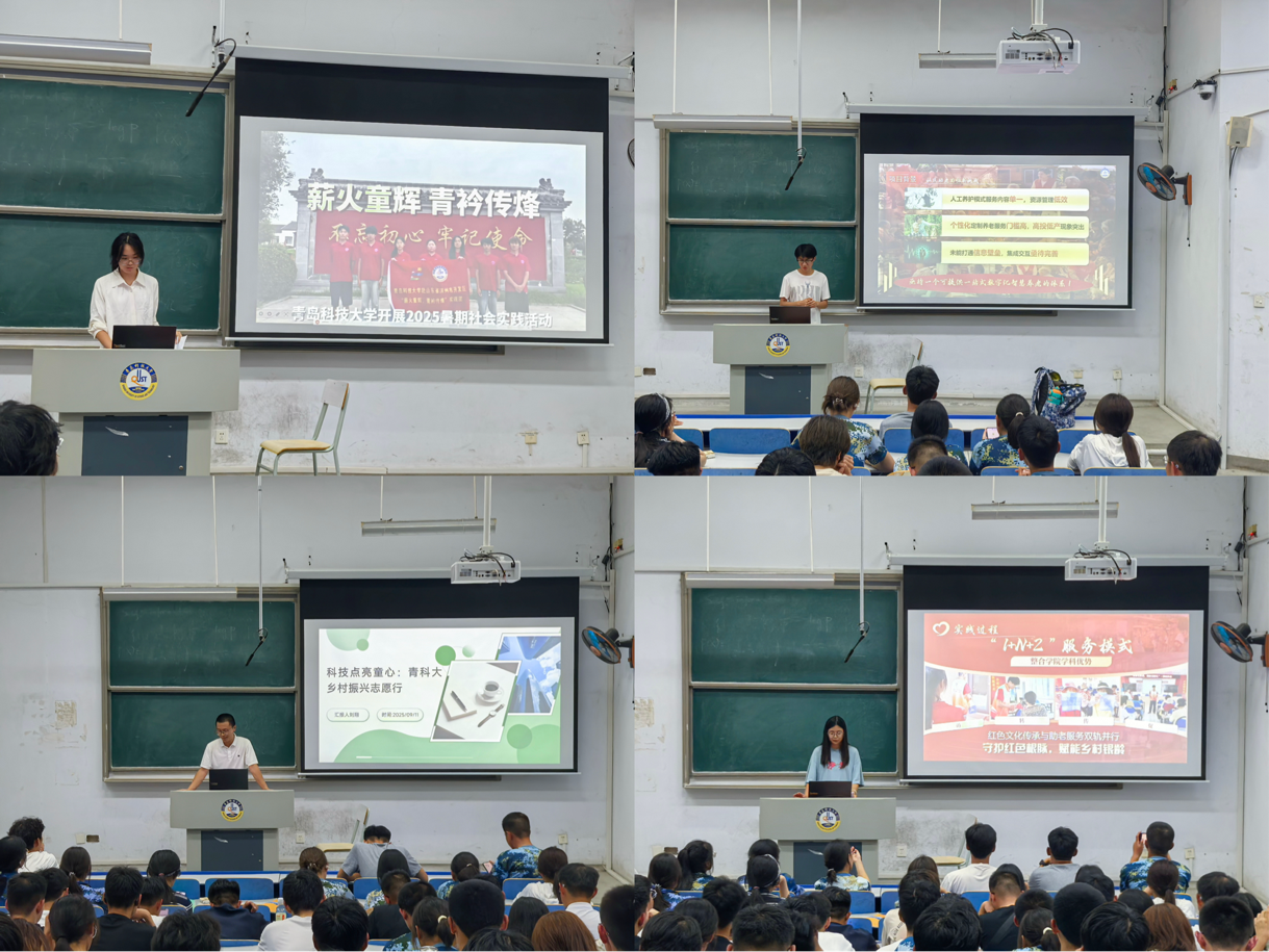 12支校重点队伍代表通过PPT、视频及数据,围绕实践内容、实施过程、成果转化及社会影响展开汇报。如乡村振兴志愿服务团以专业助力农产品销售,红色宣讲团推动红色文化广泛传播。评委组从项目设计、创新性等维度点评,提出优化建议。交流环节,学子分享实践收获:“青鸟计划”参与者谈专业技能提升与职业规划明晰,“云支教”成员述与偏远地区孩童的温暖联结。他们纷纷表示,社会实践让自己收获了宝贵经验,增强了社会责任感。答辩分享后,各实践团为新生答疑解惑,共同努力将志愿之火传递下去。