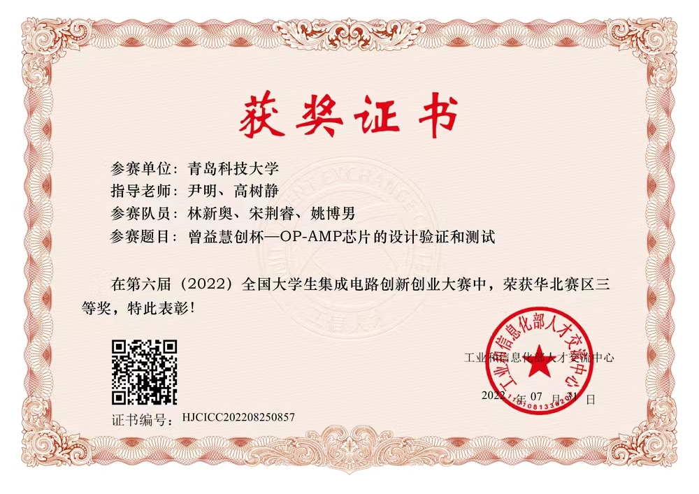 全国集成电路创新创业大赛华北赛区三等奖;
