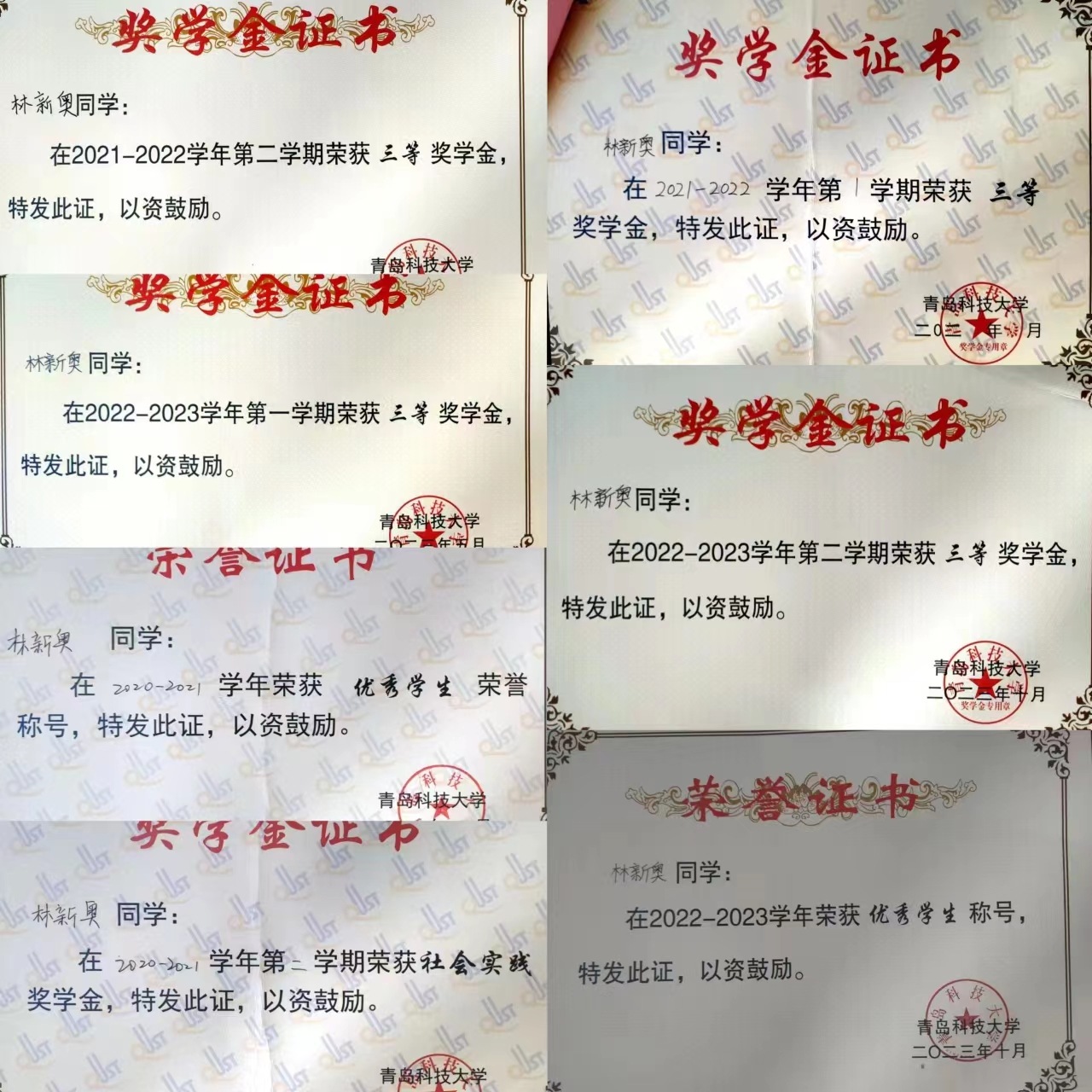综测专业排名:15/58;13/58;8/58