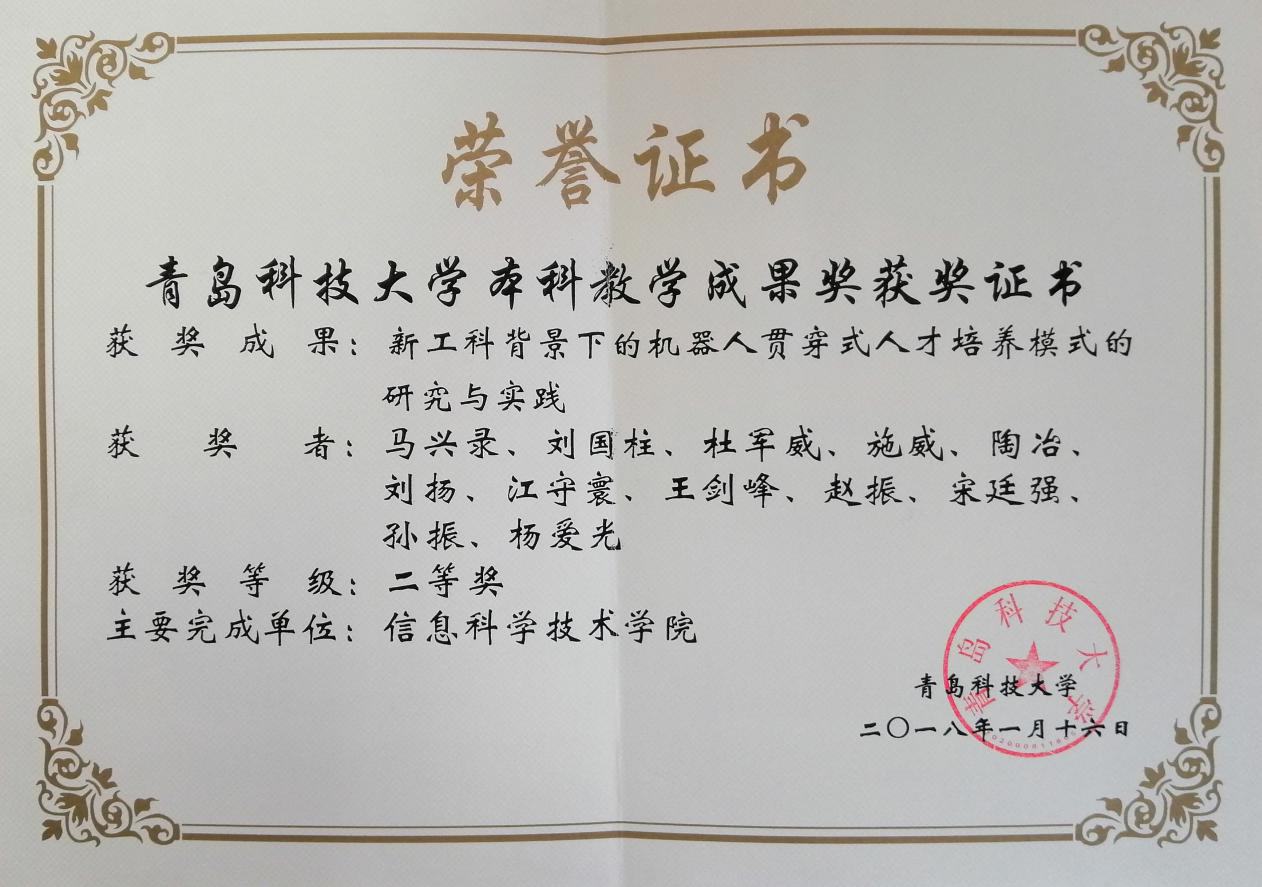 6、山东省教学成果奖--多学科交叉融合的智能机器人产业人才培养体系的研究与实践