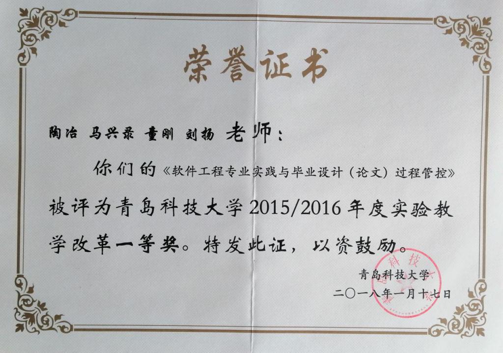 5、KY开元集团官网入口实验技术改革奖--软件工程专业实践与毕业设计(论文)过程管控