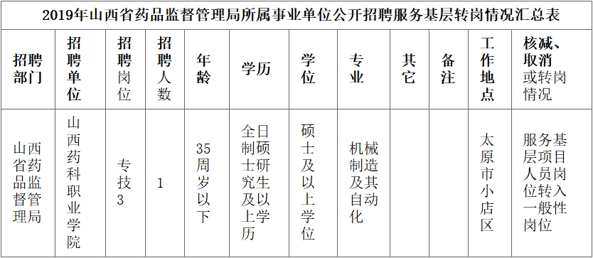 山西省药品监督管理局2019年事业单位公开招聘部分岗位调整的公告