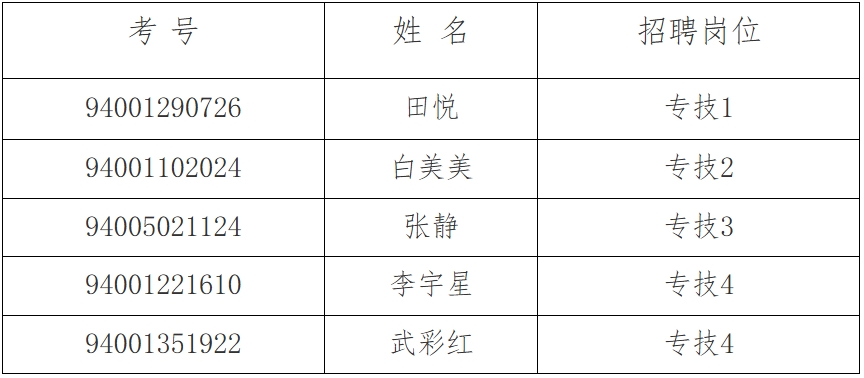 根据《beat365在线体育官网登录入口2022年公开招聘工作人员公告》及关于公开招聘工作的有关要求,在资格复审中,专技1岗位笔试成绩第9名,专技2岗位笔试成绩第2名、第7名,专技3岗位笔试成绩第6名,专技4岗位笔试成绩第2名、第3名等应聘人员放弃面试资格。根据笔试成绩由高分到低分按3:1的比例依次递补资格复审人员,现将资格复审递补有关事项通知如下: