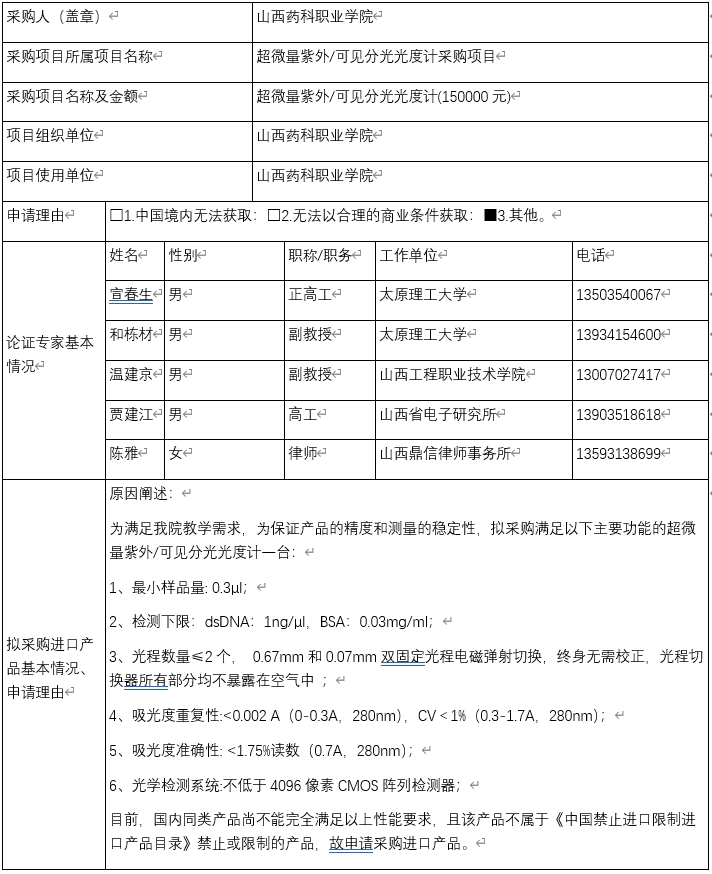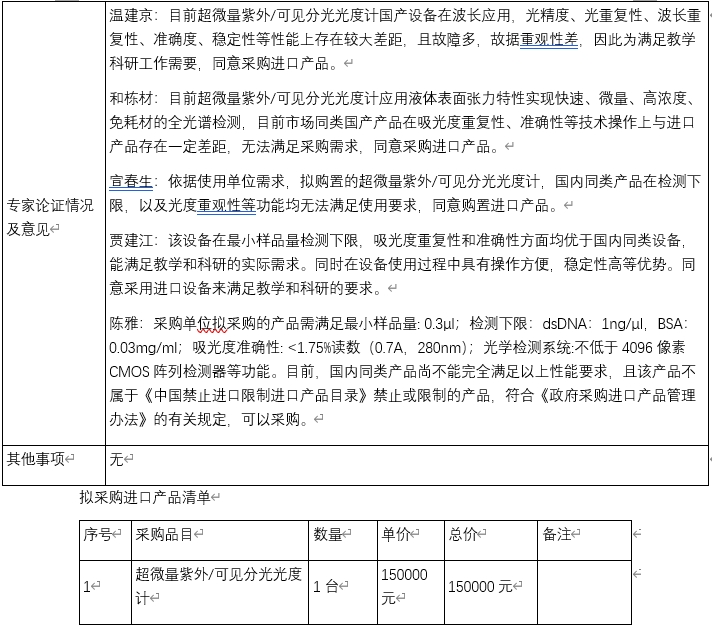 beat365在线体育官网登录入口超微量紫外/可见分光光度计采购项目拟采购进口产品满足使用需求,现将申请采购进口产品的基本情况、专家论证情况及意见进行公示,公示期为2022年8月3日起至2022年8月9日止(五个工作日)。若对专家组论证意见存在异议,可在公示期内提出,并将相关意见和依据,书面报送采购单位。