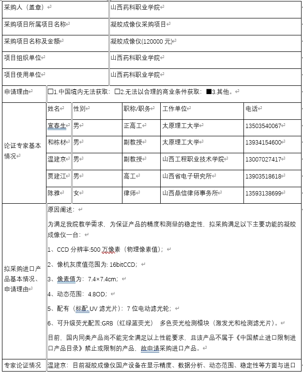 beat365在线体育官网登录入口凝胶成像仪采购项目进口产品专家论证意见公示