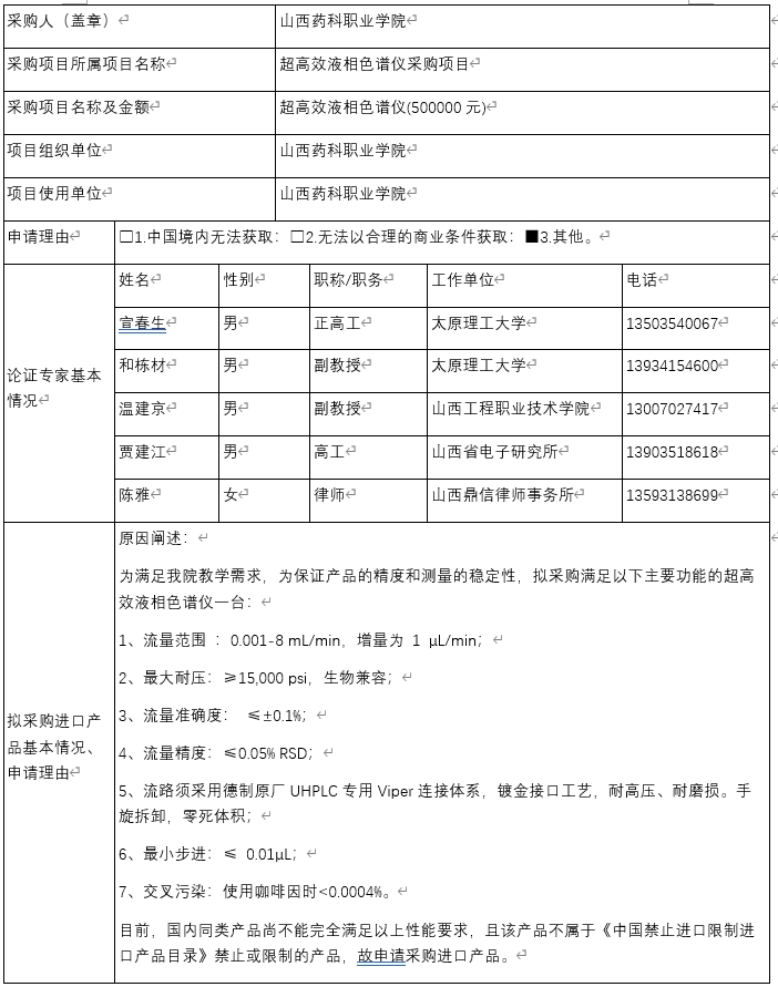 beat365在线体育官网登录入口超高效液相色谱仪采购项目进口产品专家论证意见公示