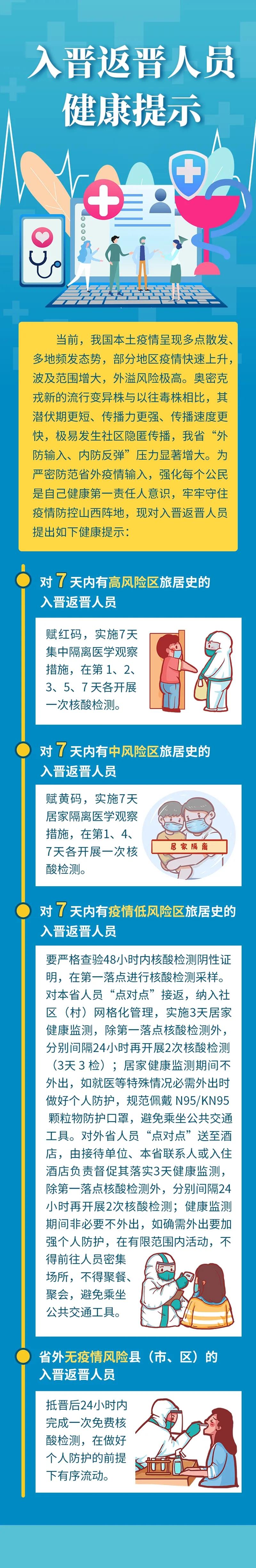 近期入晋返晋人员健康提示