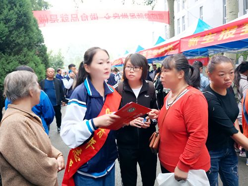 新生报到现场,院党委书记张瑞芳看望新同学并询问新生报到情况。