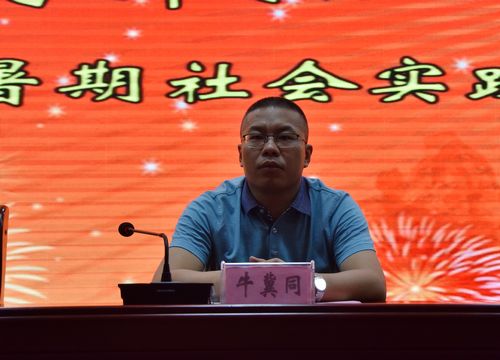 团省委学校部部长牛冀同代表团省委对beat365官网暑期社会实践出征仪式的召开表示祝贺。他充分肯定了beat365官网历年暑期社会实践工作,同时就今年大学生暑期社会实践活动提出两点希望:一是希望广大青年学生要珍惜机会、提高素质,要充分认识社会实践对于成长、成熟,成才、成人的重要意义和价值,积极投入到实践服务中去,在实践中历练胆识,在服务中提高能力,在奉献中锤炼品格;二是希望各级团组织要科学谋划、不断创新,广泛开展形式多样的实践服务活动,积极构建实践育人的创新机制和长效机制。
