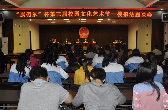 图为“康伲尔”杯第三届校园文化艺术节之模拟法庭决赛现场