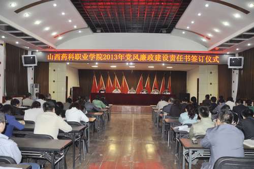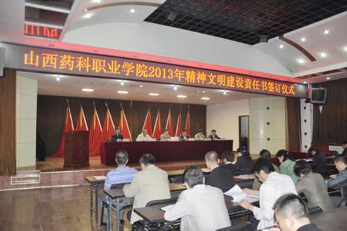 5月8日下午,学院2013年度工作目标责任书、精神文明建设责任书、党风廉政建设责任书签订仪式在文体活动中心举行。学院领导及全体中层干部、副高以上职称教师出席了本次会议。会议由党委副书记、院长李华荣同志主持。