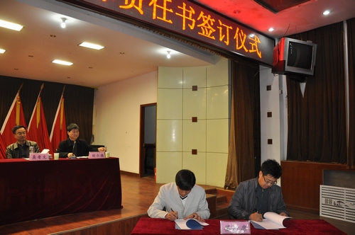 随后,院领导分别与学生处、后勤处、电教中心、财务处、组织人事部、宣传统战部、教务处等部门负责人签订安全责任书和工作目标责任书。