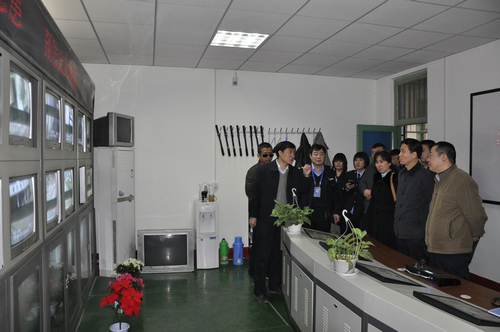 检查组一行听取了胡尔雅副院长关于学院2011年度 “平安校园”建设工作汇报,详细查阅了“平安校园”建设工作资料台账,实地察看了监控室、护坡、学生宿舍、食堂、财务室等重点单位和部位的技防设施,并组织了突发消防安全事故演练和学生问卷调查。