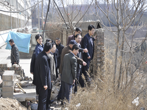汇报会之前,汤部长一行对校园环境和部分教学场所进行了视察。特别是在汇报会之后,汤部长等领导还专门到学院学生公寓楼护坡进行了实地考察,认真听取了学生公寓楼护坡基本情况的介绍。汤部长对解决学院目前面临的困难和问题,做出了具体明确的重要指示。
