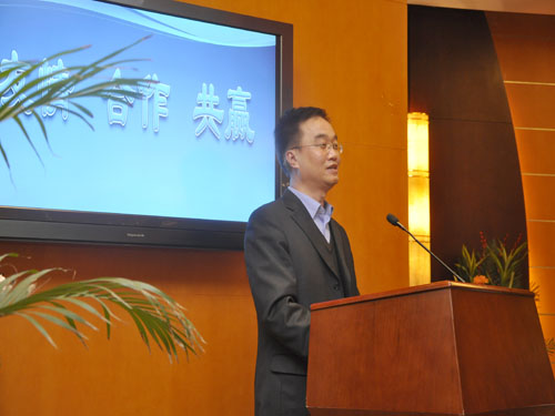 山西省食品药品监督管理局副局长杨恩建代表学院主管部门作了重要讲话。首先他对学院校友会的成立表示祝贺。同时他以特殊校友的名义,就校友会的成立讲了三点意见:一是校友会体现的是一种特殊的亲情,是联系学子与母校情感的最佳纽带,是学校寻求发展的一个重要举措,也是实行校企合作的关键一步;二是校友会创造的是共建共赢的平台,成立校友会,一定要多有活动,多有特殊的活动,多设渠道,多设发展的平台,以此增强校友会的凝聚力和向心力;三是校友会要想办得长久,办得成功,一定要有优秀的辛勤的园丁去维护它,那就需要会长、秘书长、分会的会长和秘书长付出很大的努力,做出积极的贡献。他希望各位校友永做常青藤,年年藤缠树,通过校友会这一平台真正达到加强校友联系、服务广大校友、促进学院发展的目的。