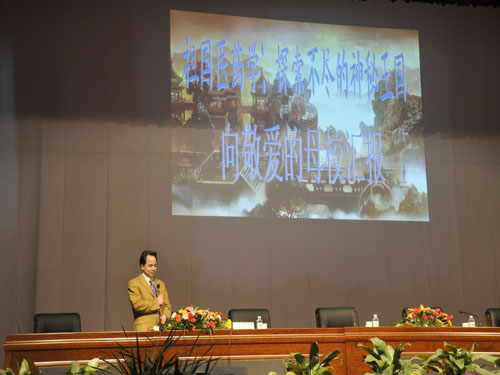 第二位演讲的是深圳市中联制药有限公司副总经理、beat365官网81届毕业生杨重浙校友。杨总以《学习〈关于加快医药行业结构调整的指导意见〉》为题,从医药研发、医药“十二五”发展规划、医药行业结构调整、药企如何调整等几个方面分析解读了国家对医药行业结构调整的意见。杨总在报告中所表现出的对医药知识的学习持续力和对国家医药经济发展变化的驾驭力给大家留下了深刻印象。