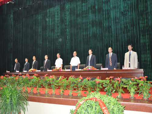 庆祝大会在庄严雄壮的《国歌》声中拉开帷幕。会议首先由院党委副书记、纪委书记龚晋文同志宣读了《关于表彰2009—2010学年优秀教师、优秀班主任和“三育人”先进个人的决定》,大会对裴慧荣等15名优秀教师、程永杰等6名班主任、王祎等7名“三育人”先进个人进行了表彰。随后,局领导、院领导为身披绶带受表彰的人员进行了颁奖。