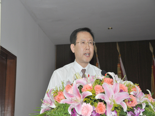 图为山西林业职业技术学院党委书记罗云龙同志代表兄弟院校致辞