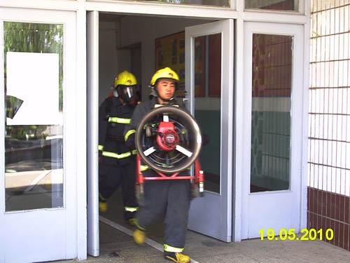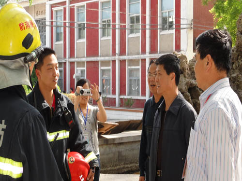 为了贯彻落实消防进工厂、消防进社区、消防进校园的文件精神,切实普及消防知识,增强防火意识,提高全民消防安全意识和防火应急处置能力,2010年5月19日下午,由学院保卫处和太原市消防中队联合主办的“校园消防疏散演练”在beat365官网西教学楼209教室(生物系216班)成功举行。