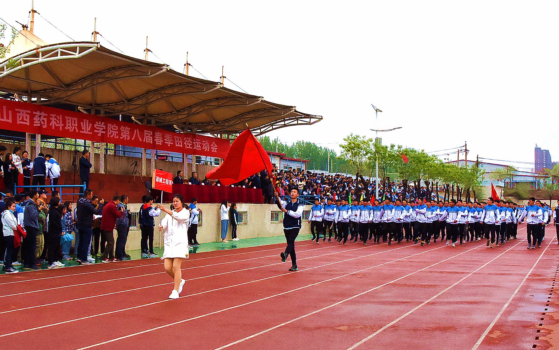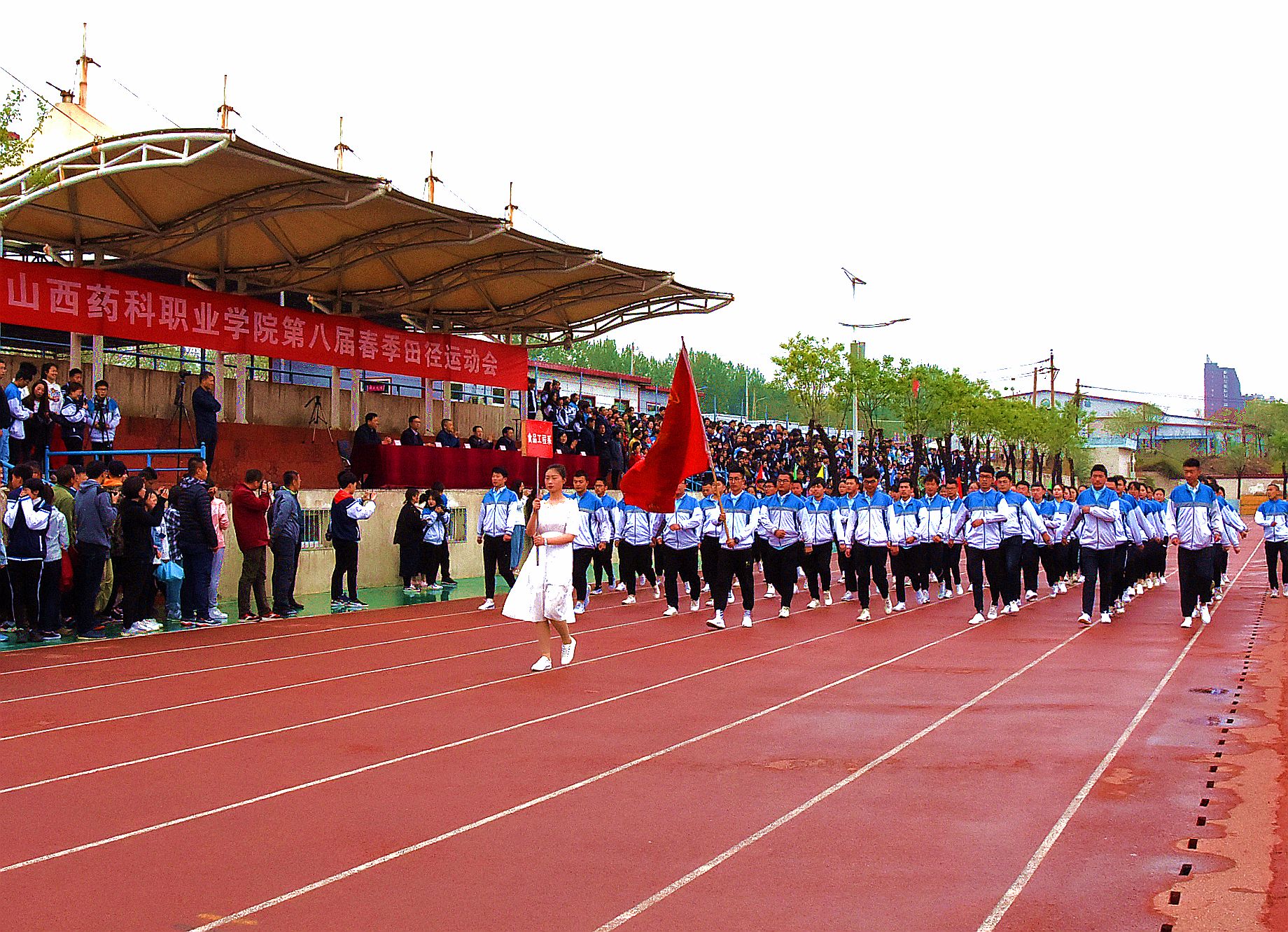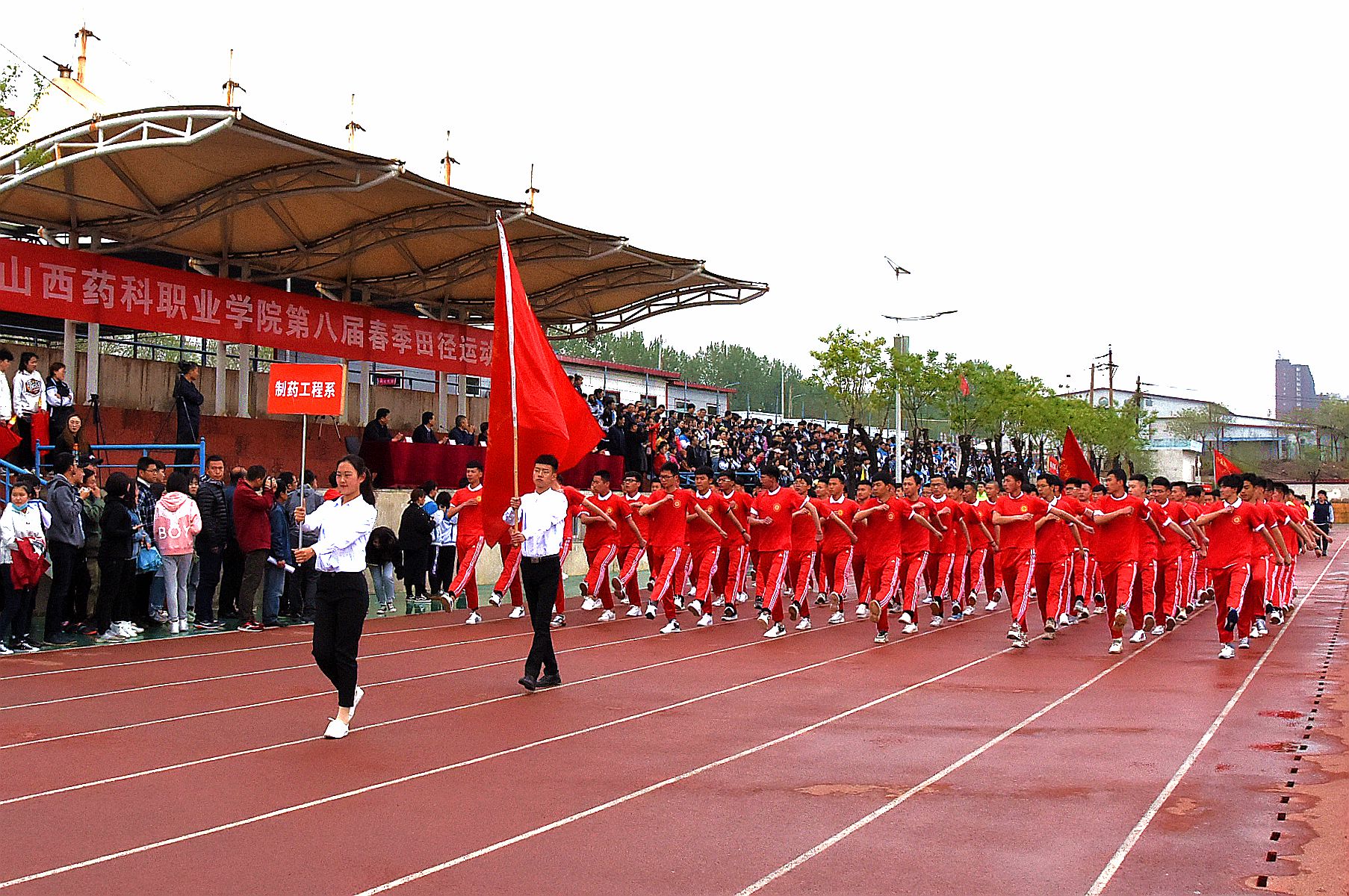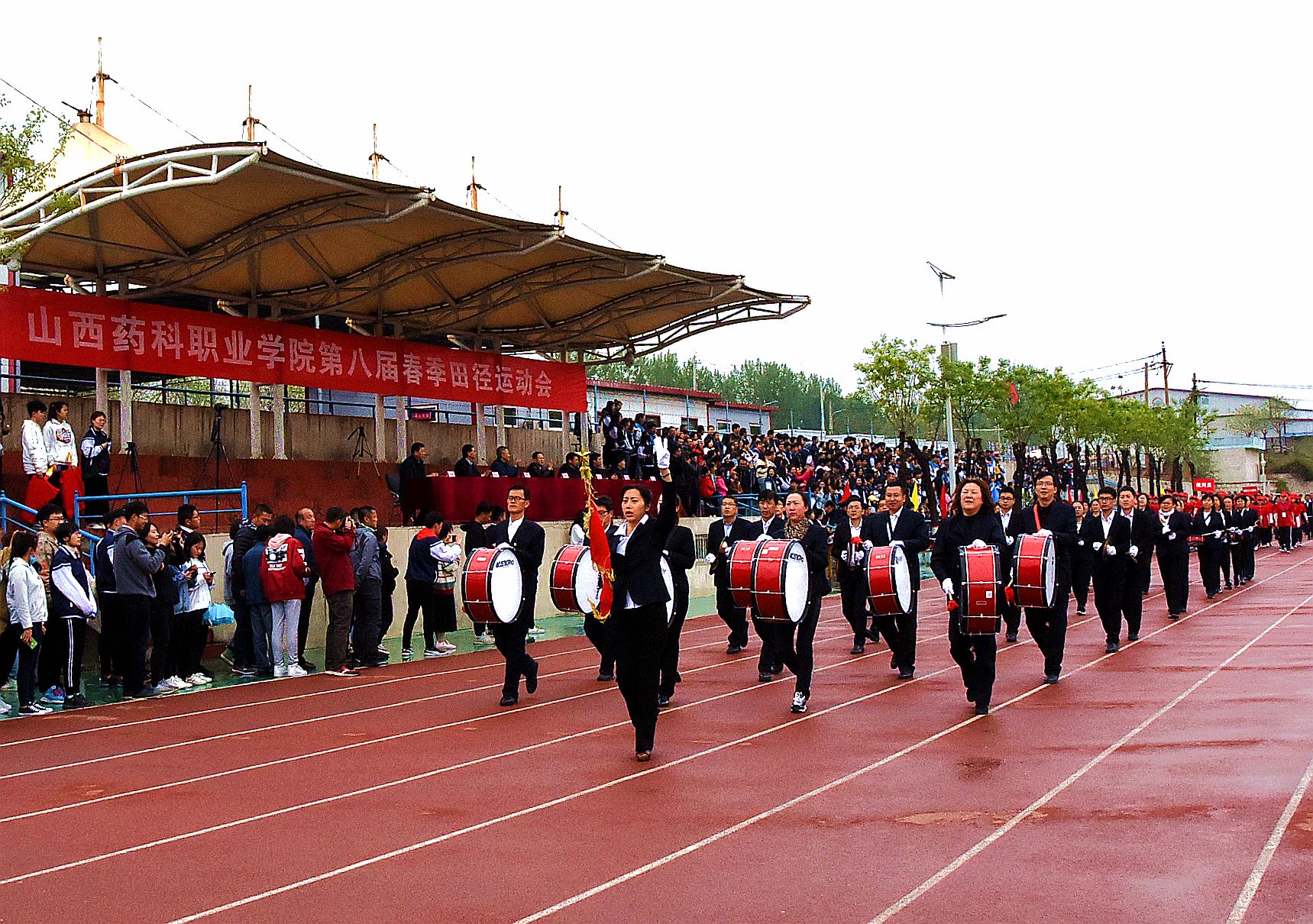 4月27日,beat365在线体育官网登录入口第八届春季运动会在校区体育场开幕。全体院领导出席开幕式,开幕式由院党委委员、副院长陕荣善主持。