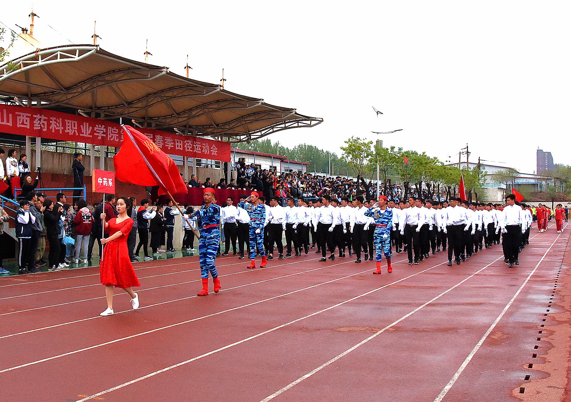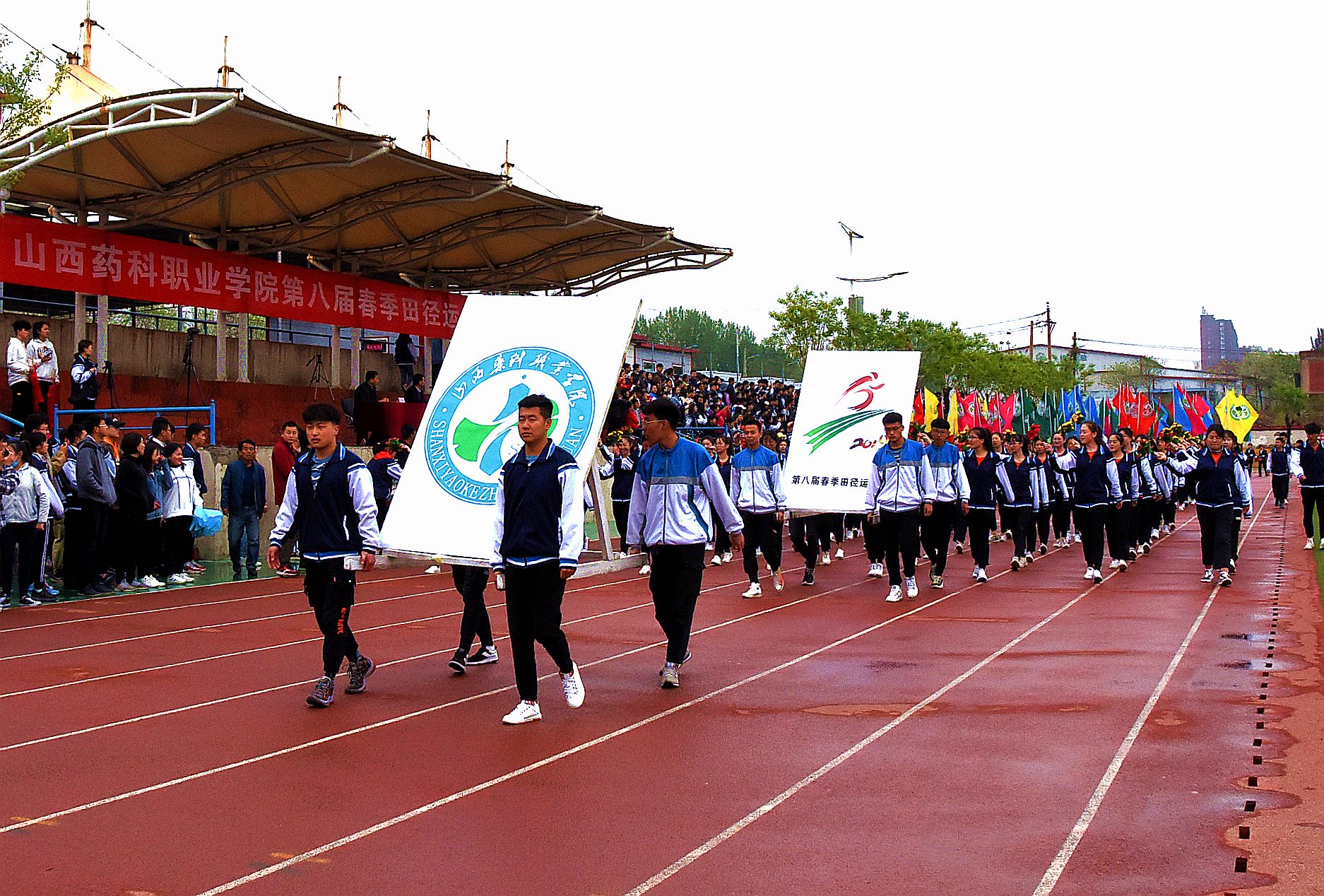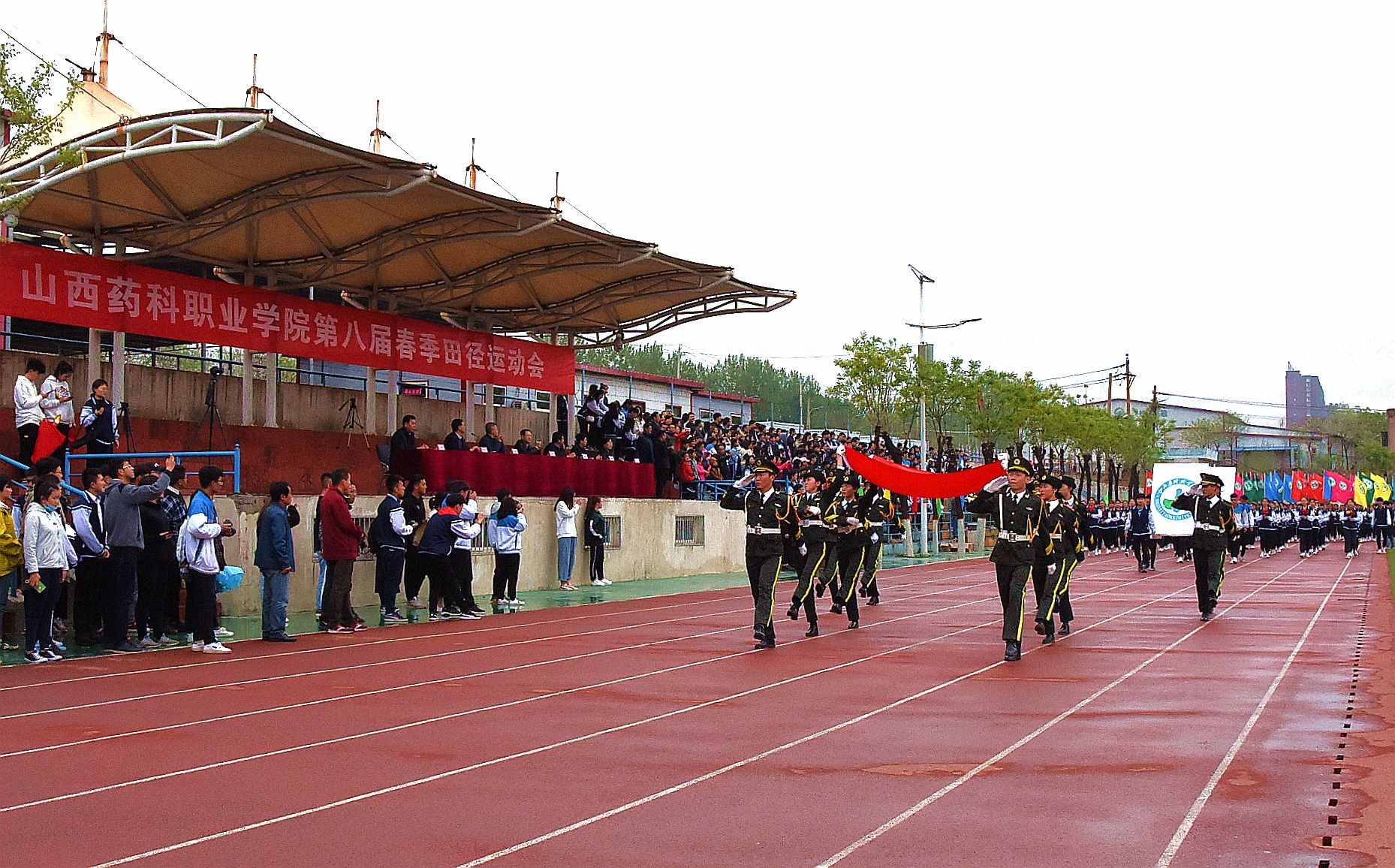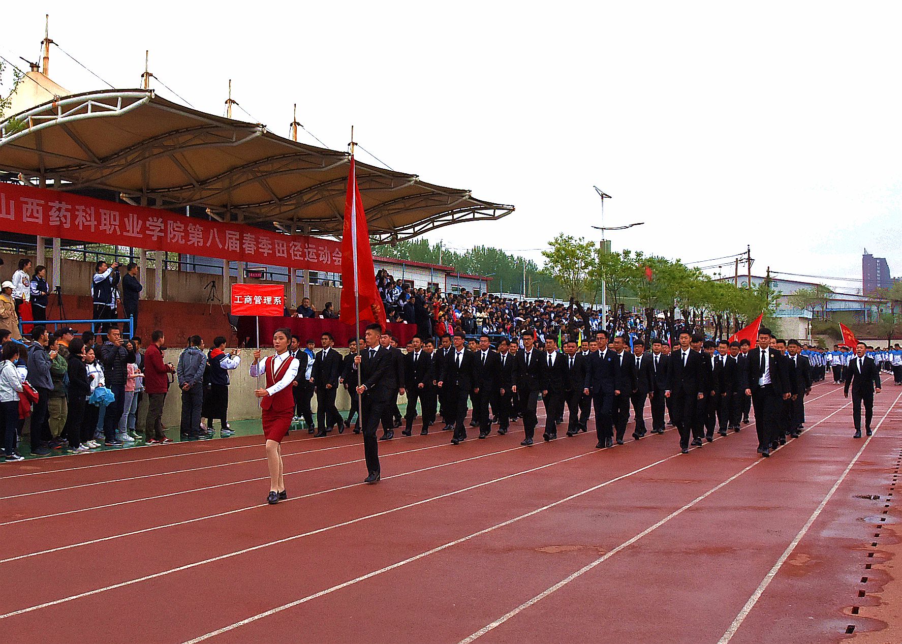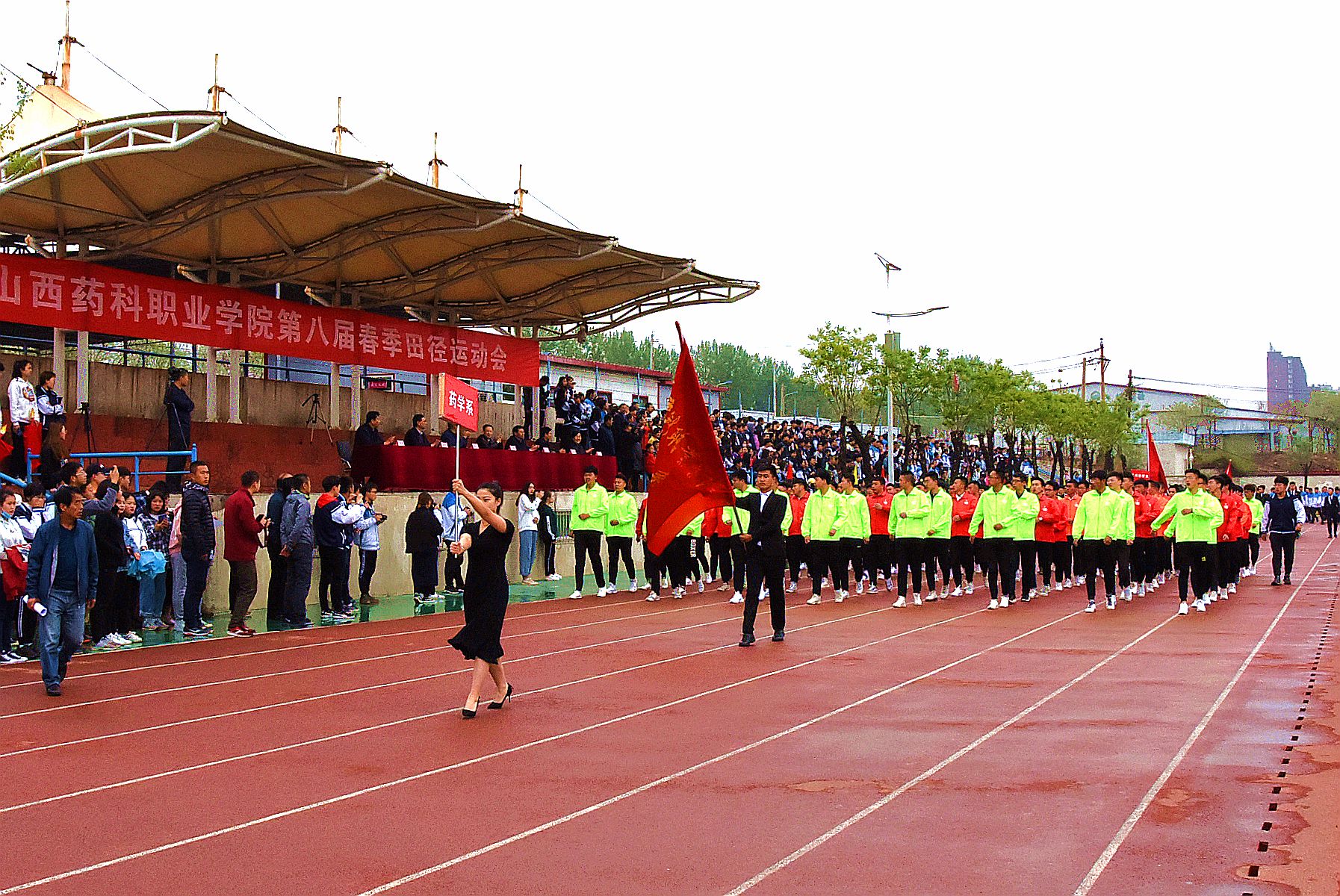 4月27日,beat365在线体育官网登录入口第八届春季运动会在校区体育场开幕。全体院领导出席开幕式,开幕式由院党委委员、副院长陕荣善主持。