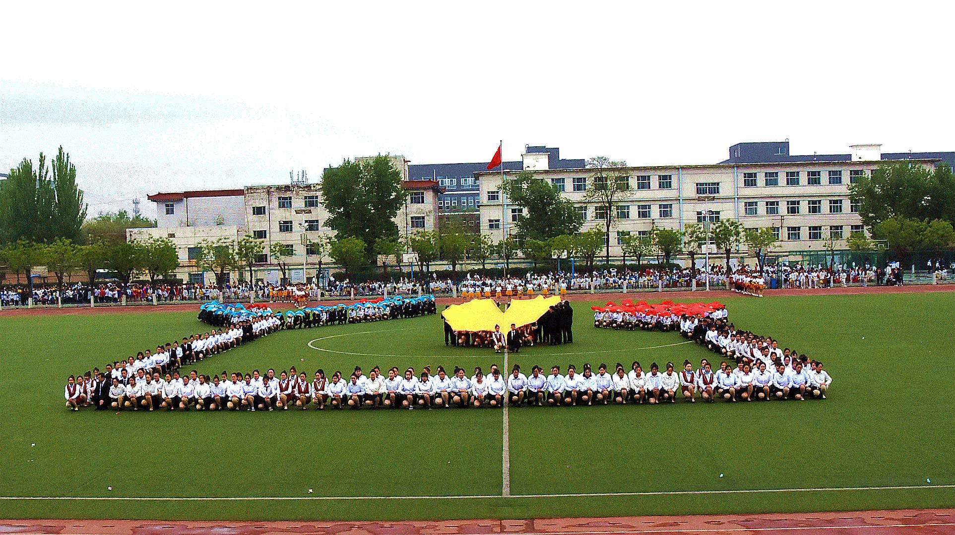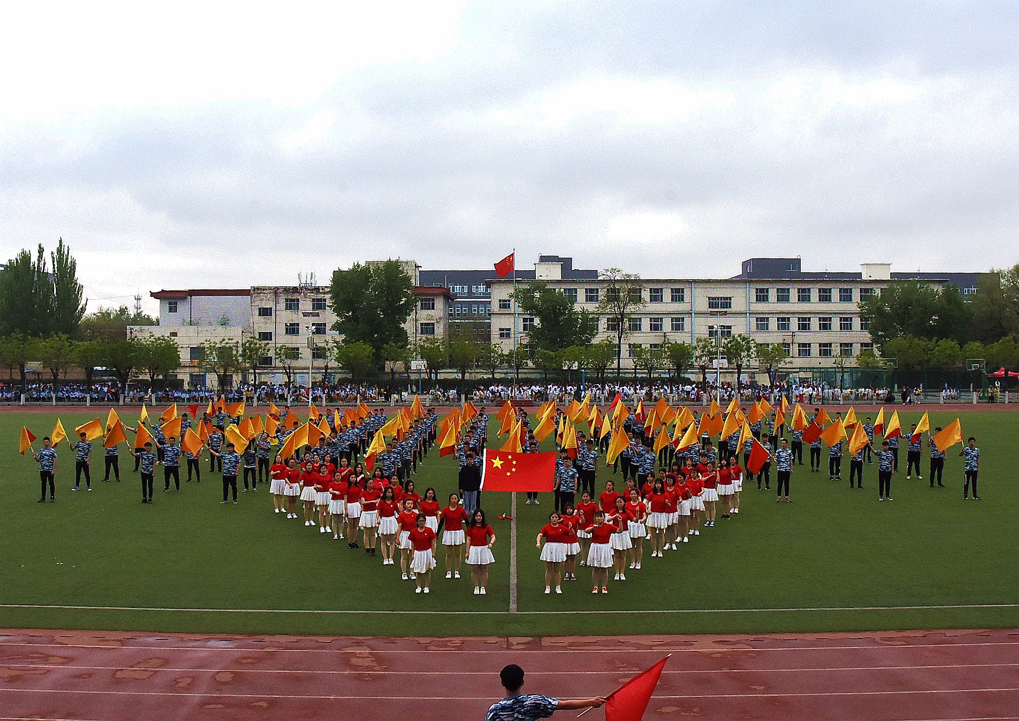 随后,在庄严的国歌声中,全体人员起立,鲜艳的五星红旗在体育场冉冉升起。