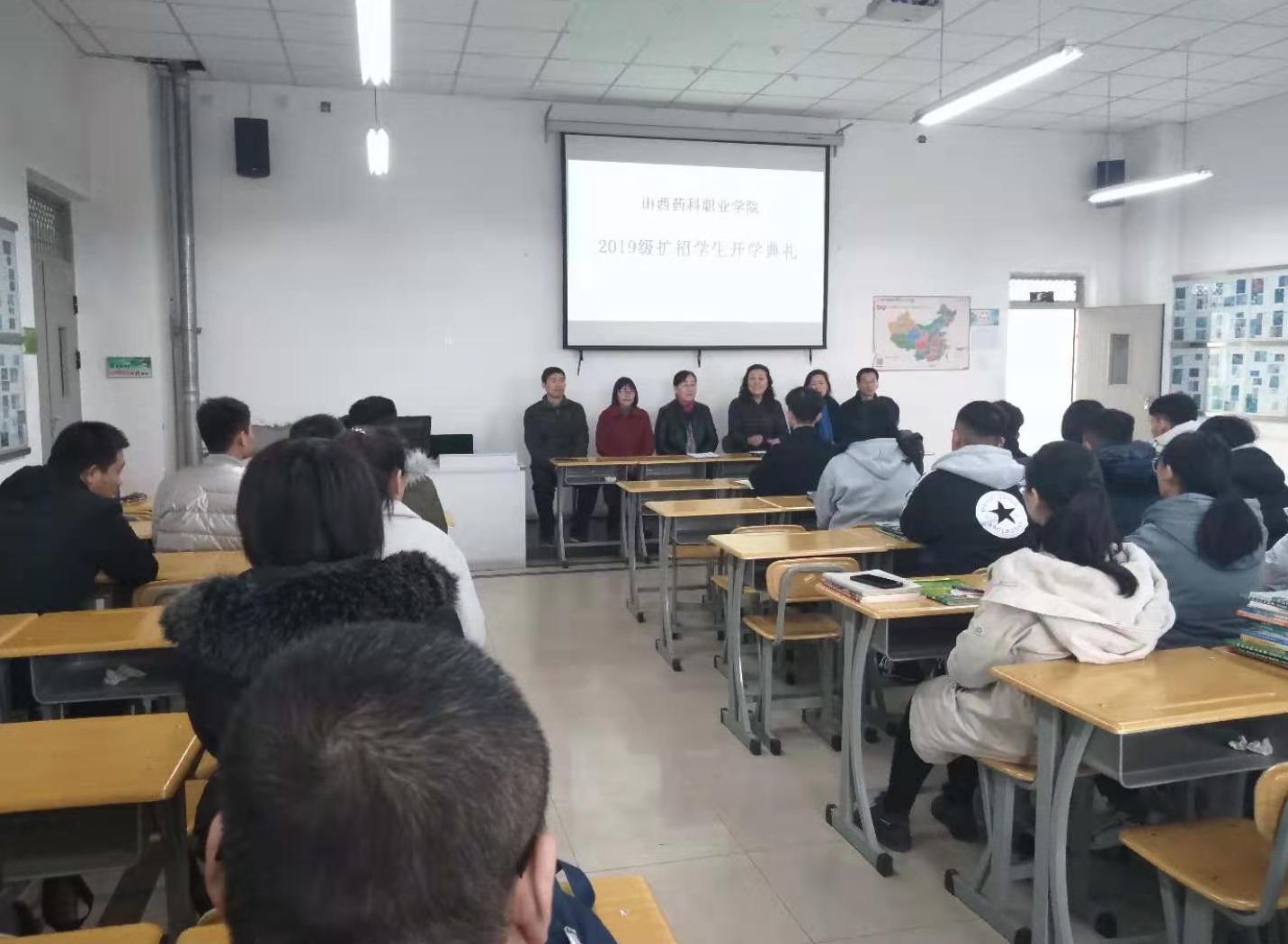 与此同时,2019级药物制剂技术扩招专业在山西华康药业股份有限公司(山西万荣县教学点)举行开班仪式。相关教学系党政负责人就学生管理、学生学习生活、奖助学金发放以及专业人才培养方案制订、企业需求、学生学情等情况作了说明,蔡翠芳教授进行了《中药栽培技术》课程首次集中授课。