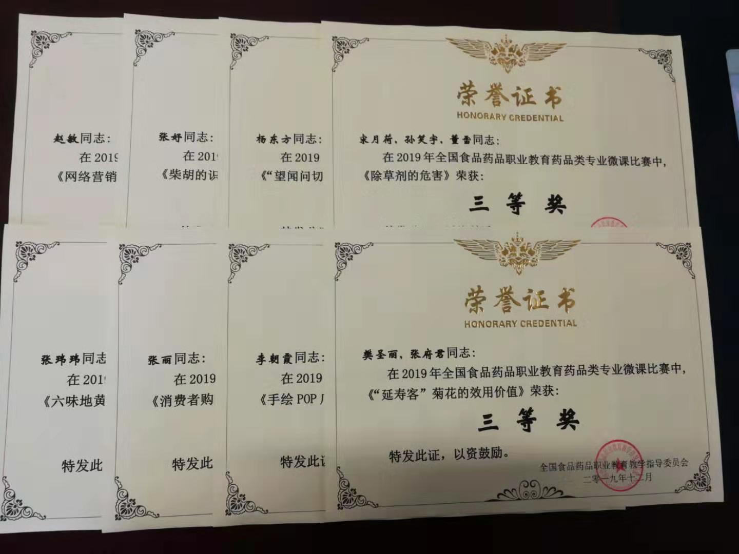 近日,在2019年全国食品药品类职业院校微课比赛中,beat365官网教师分别取得一等奖1个、二等奖5个、三等奖8个的优异成绩。其中,食品工程系田艳花老师的作品《高压蒸汽灭菌技术》获一等奖。药学系王沛老师的作品《帕金森病》,中药系张孟容、郭敏娜、蔡翠芳三位老师的作品《远志筒巧加工》,工商管理系张乾老师的作品《消费者购买决策类型》、张蓉老师的作品《我国电子商务发展现状及趋势》、温俊香老师的作品《O2O电子商务》获二等奖。工商管理系李朝霞老师的作品《手绘POP广告的制作》、张丽老师的作品《消费者购买决策过程》、赵敏老师的作品《网络营销利器之网络广告》,中药系杨东方老师的作品《“望闻问切”辨丁香》、张妤老师的作品《柴胡的识别》、张玮玮老师的作品《六味地黄丸的显微鉴定》、樊圣丽和张府君二位老师的作品《“延寿客”菊花的效用价值》,中药系孙笑宇和董雪、制药工程系宋月荷三位老师的作品《除草剂的危害》获三等奖。