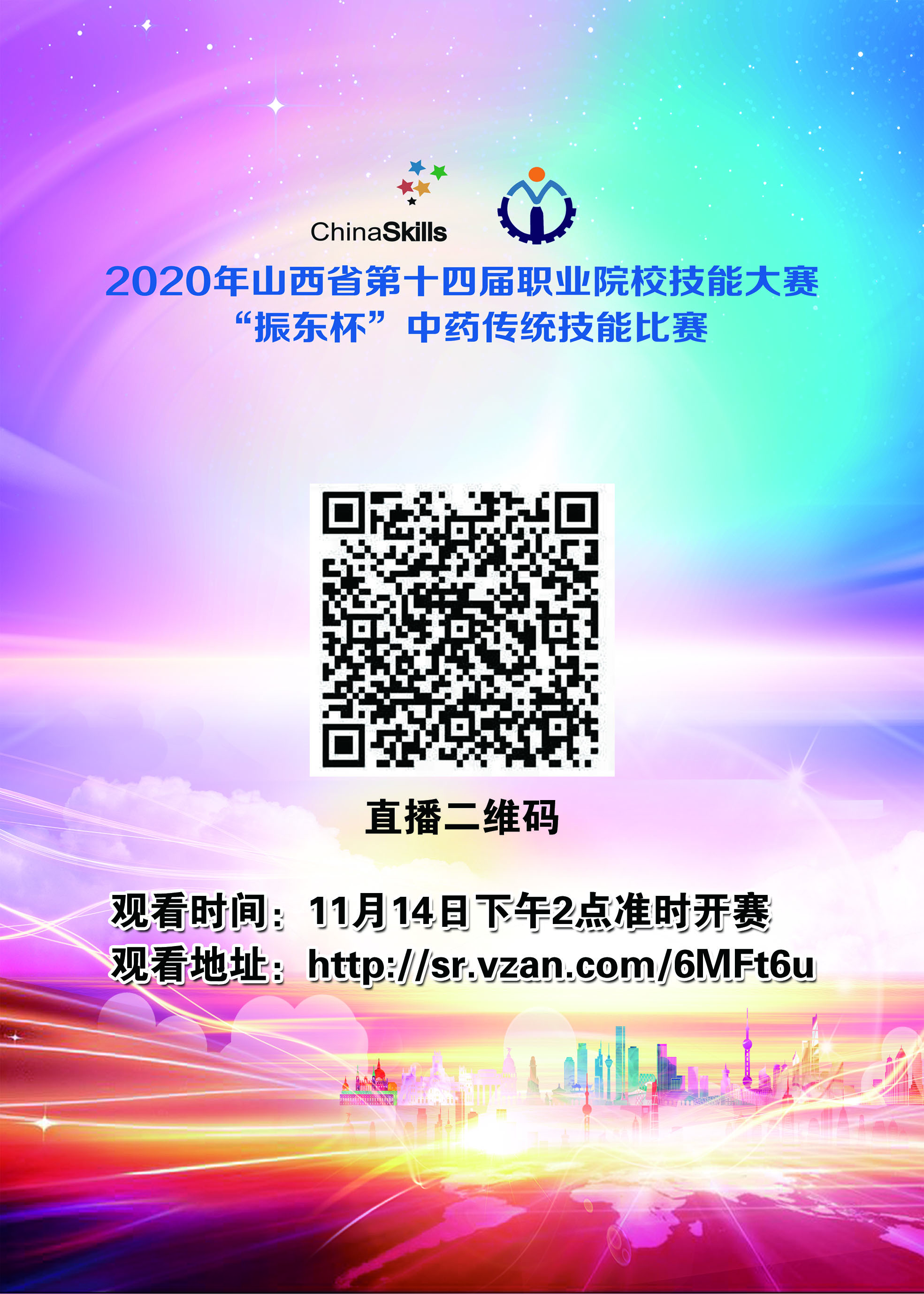 11月13日-15日,beat365官网将承办2020年山西省第十四届职业院校技能大赛“振东杯”中药传统技能比赛,届时,学院将对比赛实况进行直播,广大师生可登录直播网址或用微信扫描二维码来进行收看。