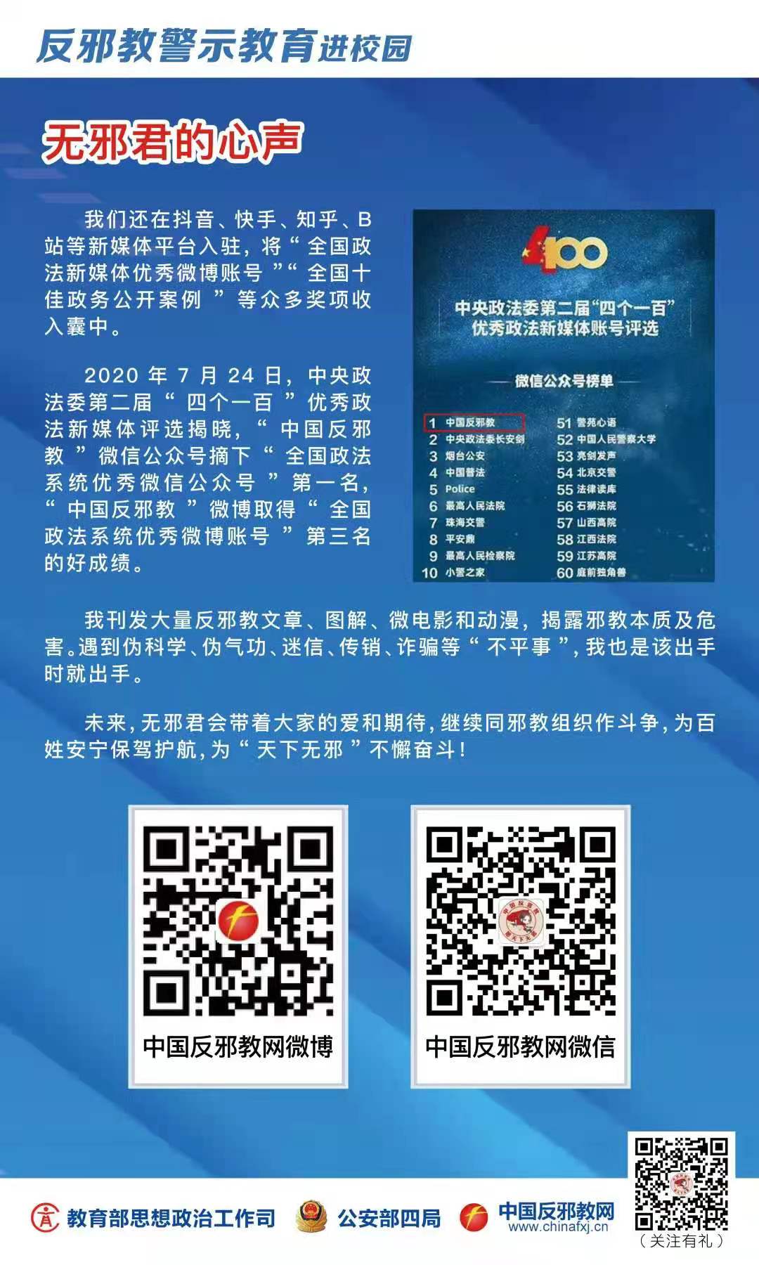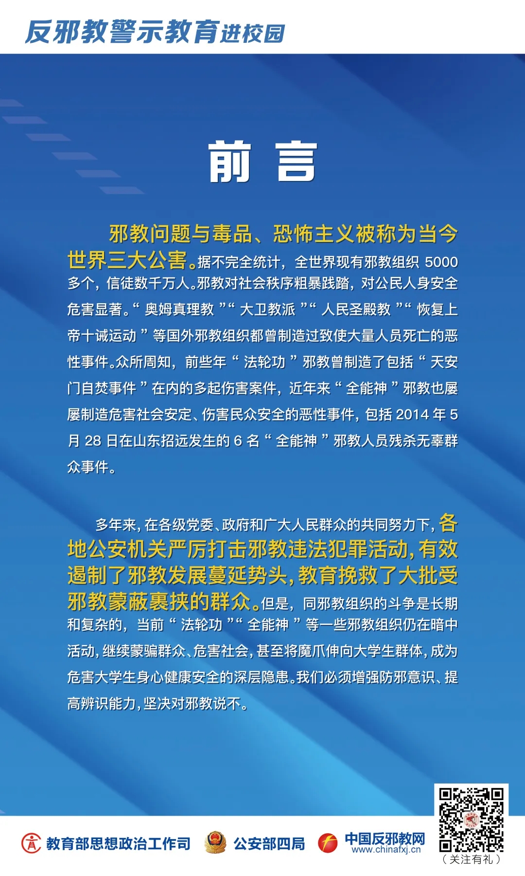 “反邪教警示教育进校园”系列展板