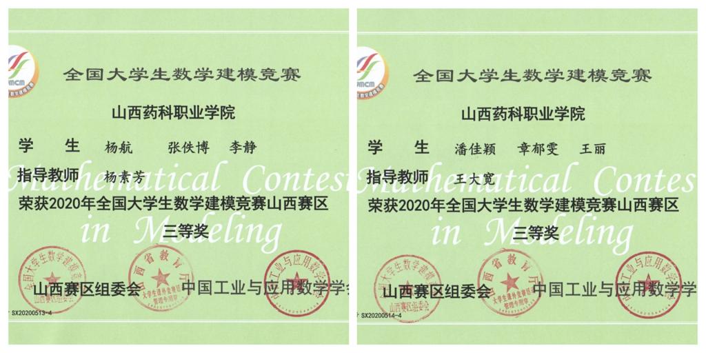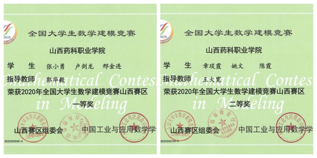 4月24日上午,2020年全国大学生数学建模竞赛山西赛区颁奖仪式在山西机电职业技术学院进行,beat365官网学生在此次比赛中取得优异成绩。其中张小勇、卢剑龙、邢金连荣获山西赛区一等奖,章琰霞、姚文、陈霞荣获山西赛区二等奖,杨航、张佚博、李静、潘佳颖、章郁雯、王丽荣获山西赛区三等奖。
