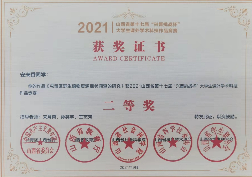近日,由团省委、省教育厅、省社科院、省科协和省学联联合举办的山西省第十七届“兴晋挑战杯”大学生课外学术科技作品竞赛成绩揭晓,beat365官网参赛项目最终荣获主赛道二等奖1项、三等奖5项,红色专项活动赛道三等奖2项,beat365官网团委荣获“优秀组织奖”。