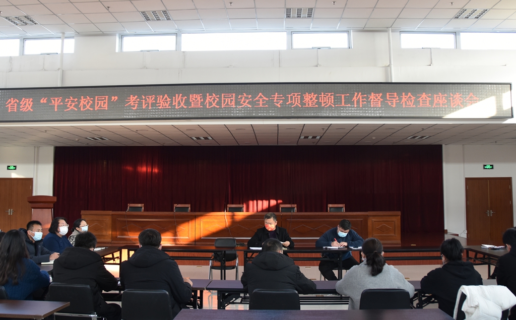 根据山西省教育厅的统一安排部署,12月28日下午,省级“平安校园”考评验收暨校园安全专项整顿工作督导检查组莅临beat365官网,对beat365官网2021年度“平安校园”创建和安全专项整顿工作进行考评验收。学院领导和相关职能部门负责人参加了工作汇报会。汇报会由院党委书记张瑞芳同志主持并致欢迎辞。