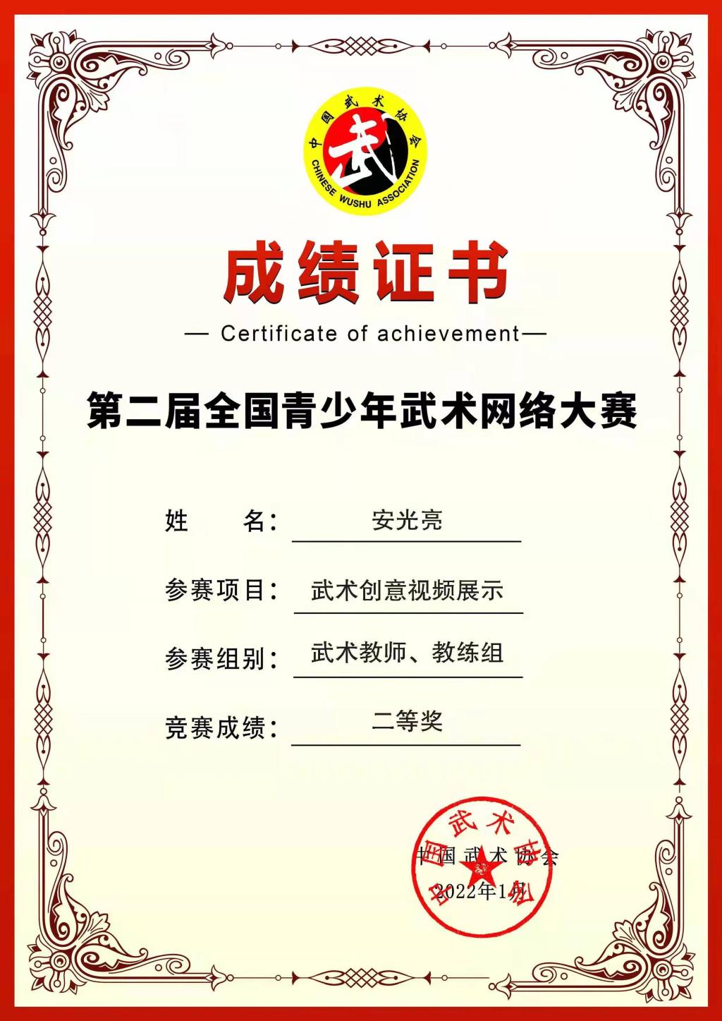 2021年12月20日-2022年1月15日,由国家体育总局中国武术协会组织的第二届青少年武术网络大赛于网上开赛,beat365官网公共体育教学部组织教师参加了此次比赛。