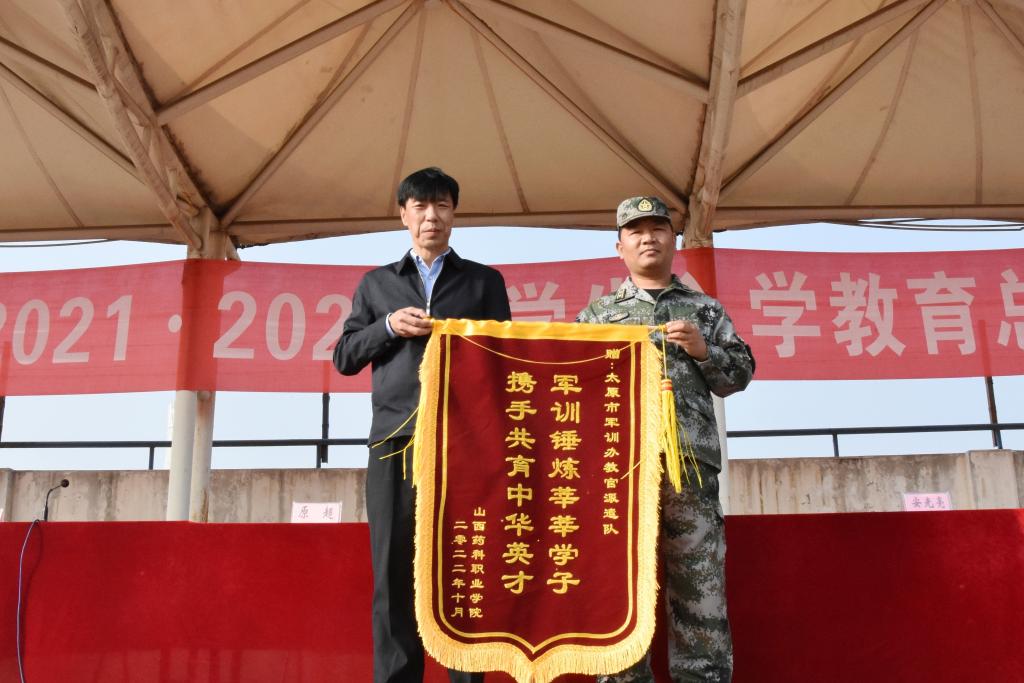 原超作总结讲话,他代表学院领导向全体帮训教官表示感谢,向圆满完成入学教育和军事国防教育任务的2021级、2022级全体同学表示祝贺。他指出,通过这次入学教育和军事国防教育,同学们的纪律和规矩意识得以树立,坚定、坚强、坚毅的品格得以淬炼。他希望,全体同学能够坚定理想信念,做新时代有志向的青年;能够坚持目标导向,做有学识有能力的青年;能够坚守优良作风,做讲美德有修养的青年。同时,要认真学习落实学院党员大会精神和要求,用实际行动为学院建设全国一流药科职业院校贡献新力量,共同创造山西药科更加美好的明天。