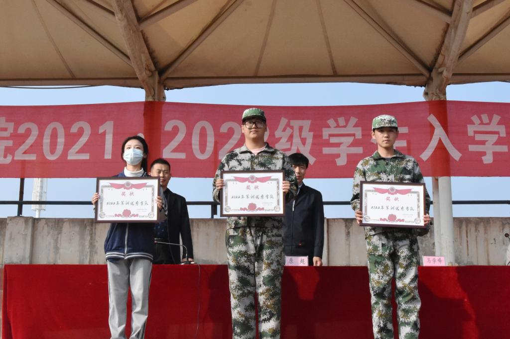 学院公共体育教学部副主任安光亮宣读了《关于表彰2022级学生军训先进集体和个人的决定》。院领导和帮训部队负责人马学峰为受表彰的学生代表颁奖。