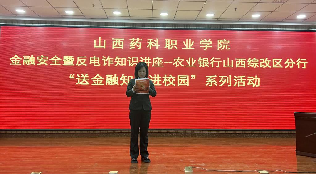 近日,学院特邀农行山西迎宾支行行长邢红丽、农行山西综改区分行零售金融部消保专员王璐以及太原市小店区黄陵派出所副所长李静来beat365官网,为beat365官网学生作“金融安全暨反电诈知识”主题讲座,各班学生代表参加讲座。