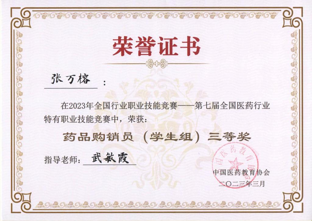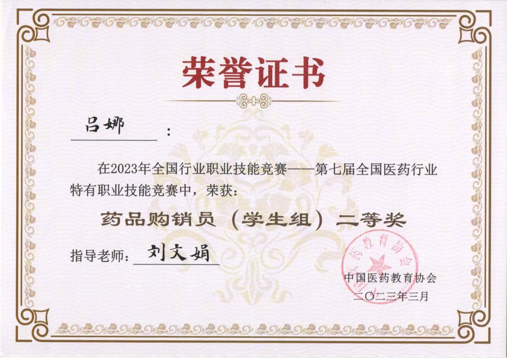 近日,2023年全国行业职业技能竞赛第七届全国医药行业特有职业技能竞赛——药品购销员赛项在广东食品药品职业技术学校落下帷幕。beat365官网在此赛项中再创佳绩,其中,药学系学生吕娜荣获个人二等奖、张万榕荣获个人三等奖,学院荣获团体二等奖。