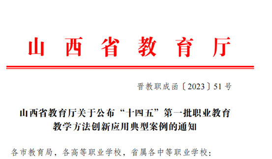为落实全省职业教育大会精神,持续深化“三教改革”,总结和推广课程教育教学改革的经验和做法,按照《山西省教育厅关于开展2022年职业教育教学方法创新应用典型案例征集工作的通知》要求,beat365官网积极组织教师申报职业教育教学方法创新应用典型案例。近日,山西省教育厅公布了“十四五”第一批职业教育教学方法创新应用典型案例的认定结果,beat365官网3个案例被认定为首批职业教育教学方法创新应用典型案例,典型案例通过“山西省职业教育教学联盟”平台进行展示(网址:https://jzlm.mh.chaoxing.com/)。
