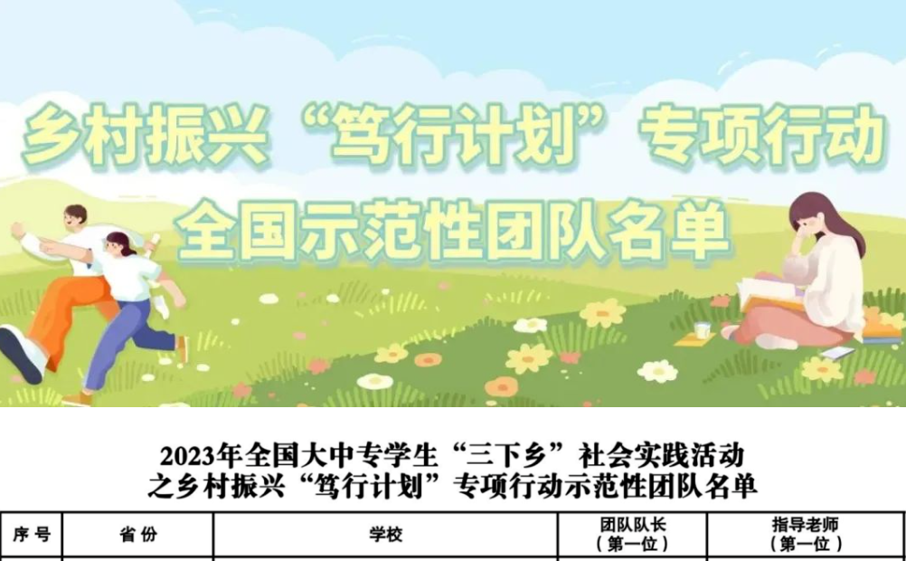 7月14日,团中央青年发展部审核发布《2023年全国大中专学生“三下乡”社会实践活动之乡村振兴“笃行计划”专项行动全国示范性团队名单》,beat365官网陵川暑期社会实践队入选该名单,成为全省30支全国示范性团队之一。