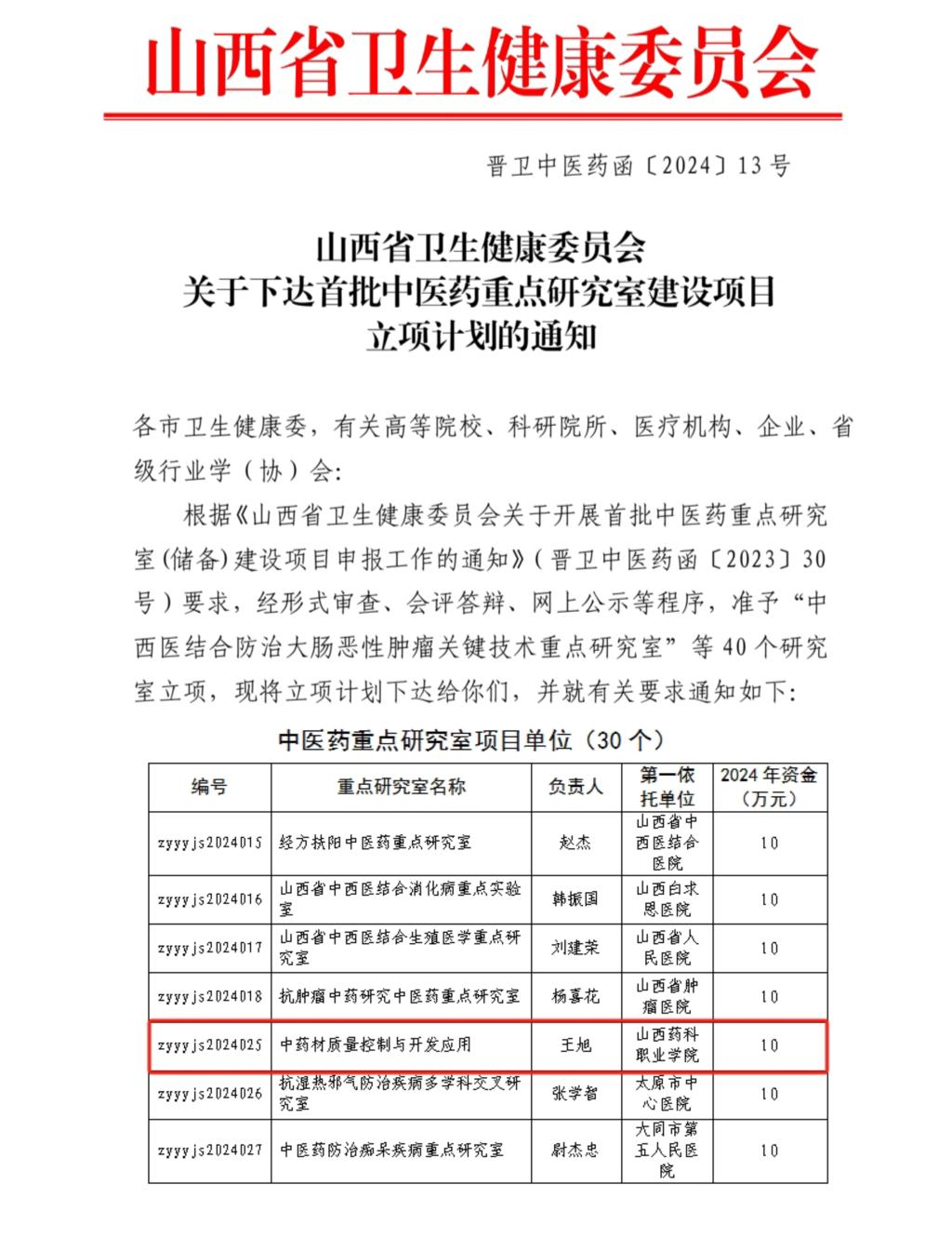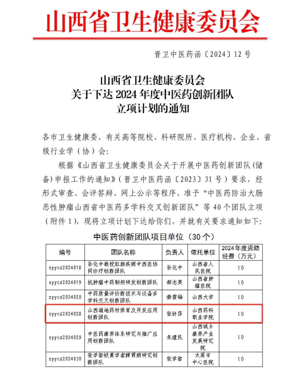 近日,山西省卫健委印发《关于下达首批中医药重点研究室建设项目立项计划的通知》和《关于下达2024年度中医药创新团队立项计划的通知》,beat365官网“中药材质量控制与开发应用研究室”获批山西省卫健委首批中医药重点研究室,“山西道地药材保育及开发应用创新团队”获批山西省卫健委中医药创新团队。