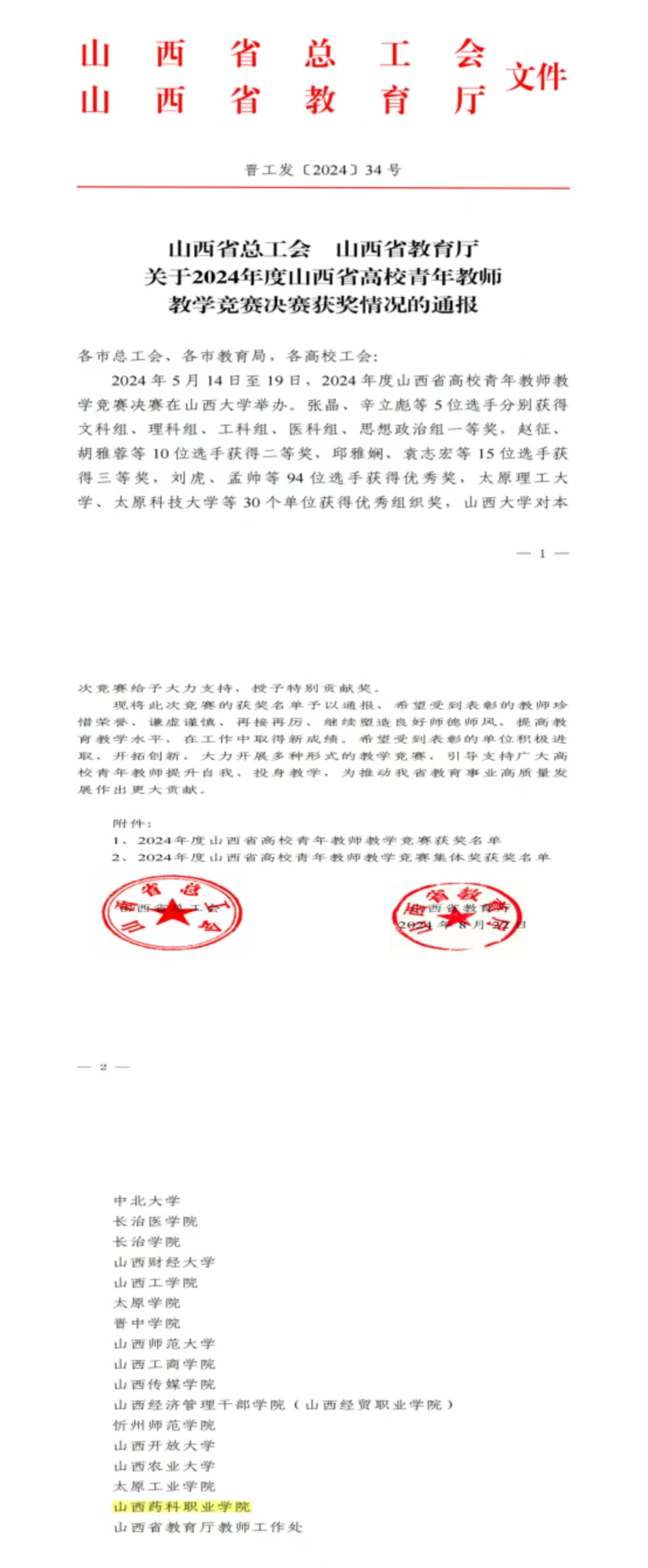 近日,山西省总工会与山西省教育厅共同发布《关于2024年度山西省高校青年教师教学竞赛决赛获奖情况的通报》,beat365官网荣获优秀组织奖。