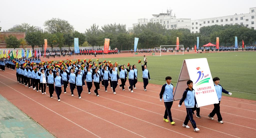 伴随着雄壮的《运动员进行曲》和激昂的解说,国旗队、校徽队、会徽队、花束队、校旗队、教职工锣鼓队、裁判员方队、教工方队、运动员代表队先后入场,用饱满的热情和激昂的斗志一起接受检阅。