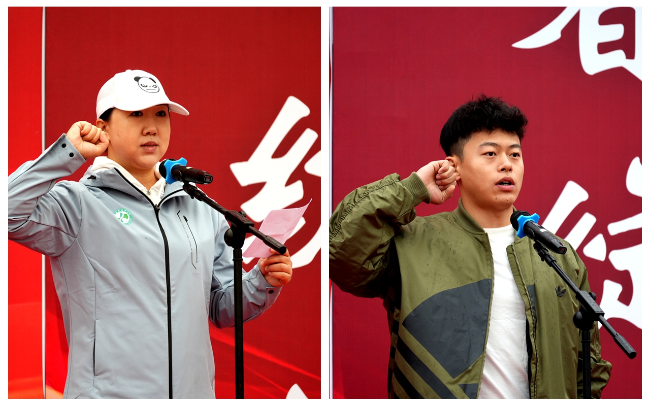教师董彬彬和学生王佳涛分别代表全体裁判员和全体运动员进行了庄严宣誓。