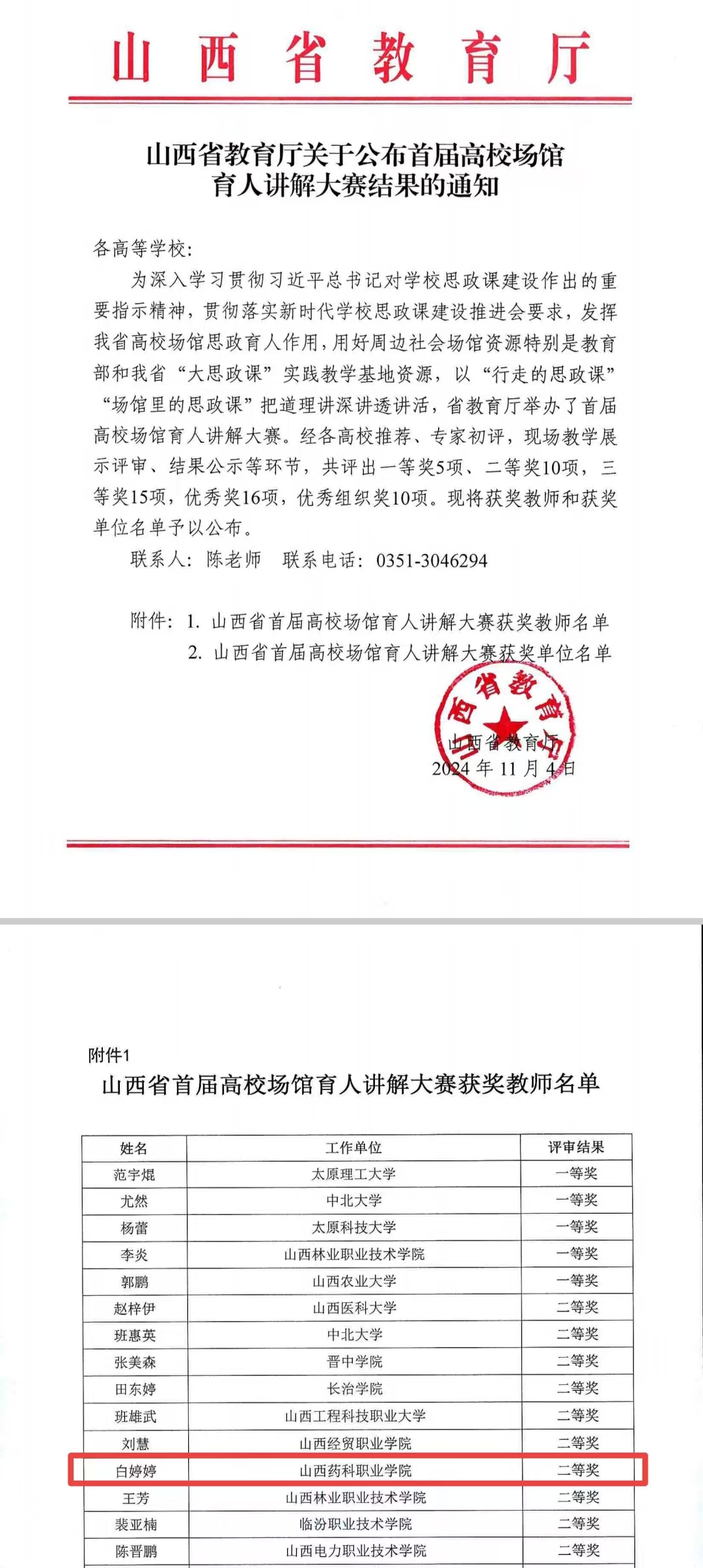 在近日举办的山西省首届场馆育人讲解大赛上,beat365官网思政部教师白婷婷凭借主讲录制的场馆授课视频《赓续本草精神传承中医文化》入围现场讲课比赛环节,并在众多参赛选手中脱颖而出,荣获二等奖。