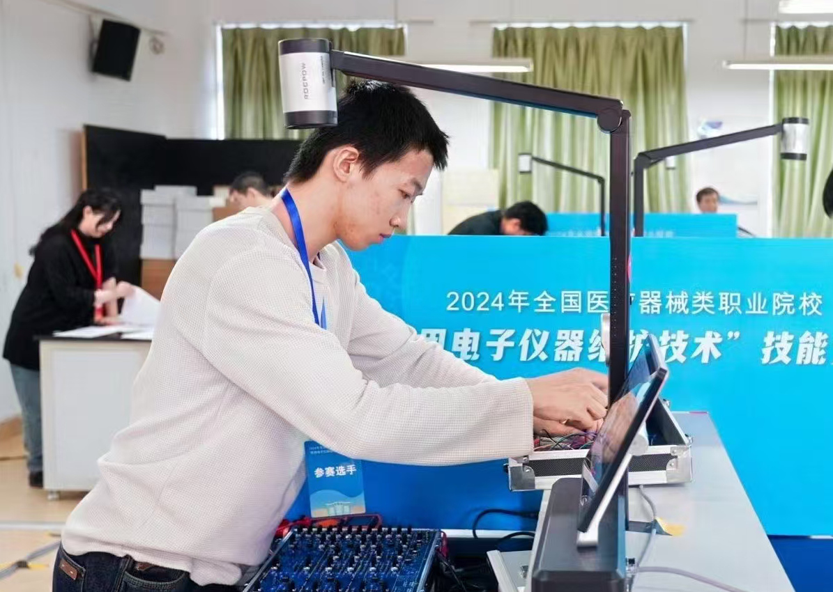 本次比赛由理论知识竞赛、虚拟仿真竞赛和技能操作竞赛三部分构成,共有来自全国各地的30支代表队进入决赛比拼技能,旨在检验学生对电子电路基础、仪器仪表的使用、典型医用电子仪器工作原理和医用电子仪器典型故障排除方面的能力。