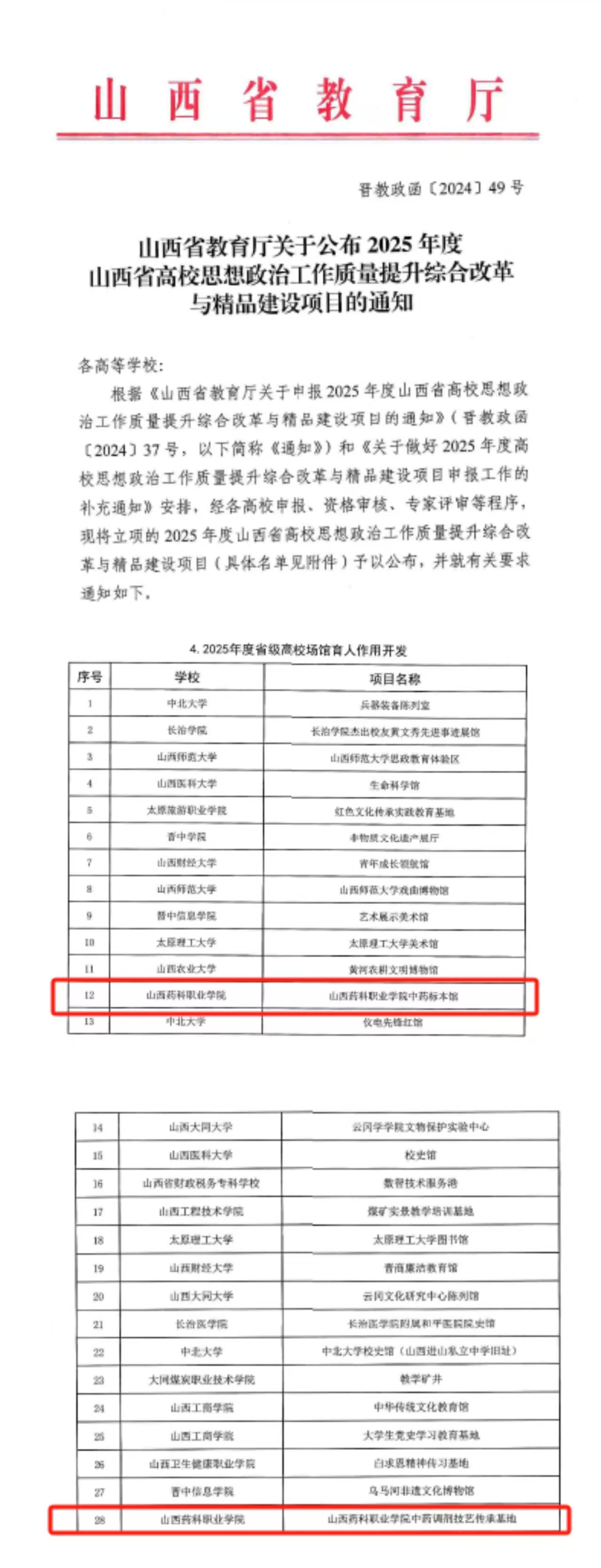 近日,山西省教育厅公布山西省高校思想政治工作质量提升综合改革与精品建设项目名单,beat365官网中药标本馆和中药调剂技艺传承基地位列其中。